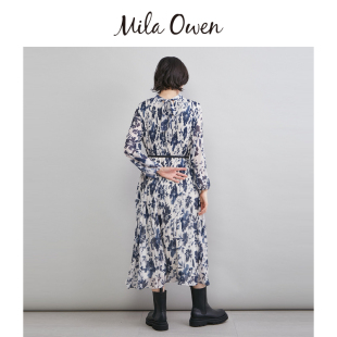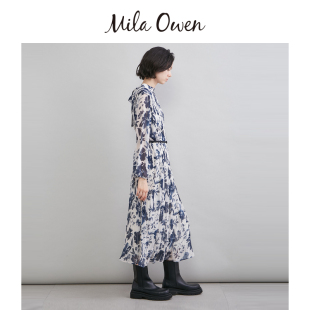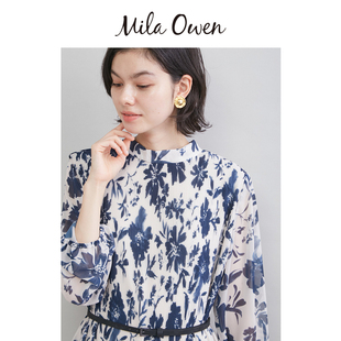 Mila 华丽优雅花卉透视高领雪纺连衣裙09WFO261045 Owen26春夏新品