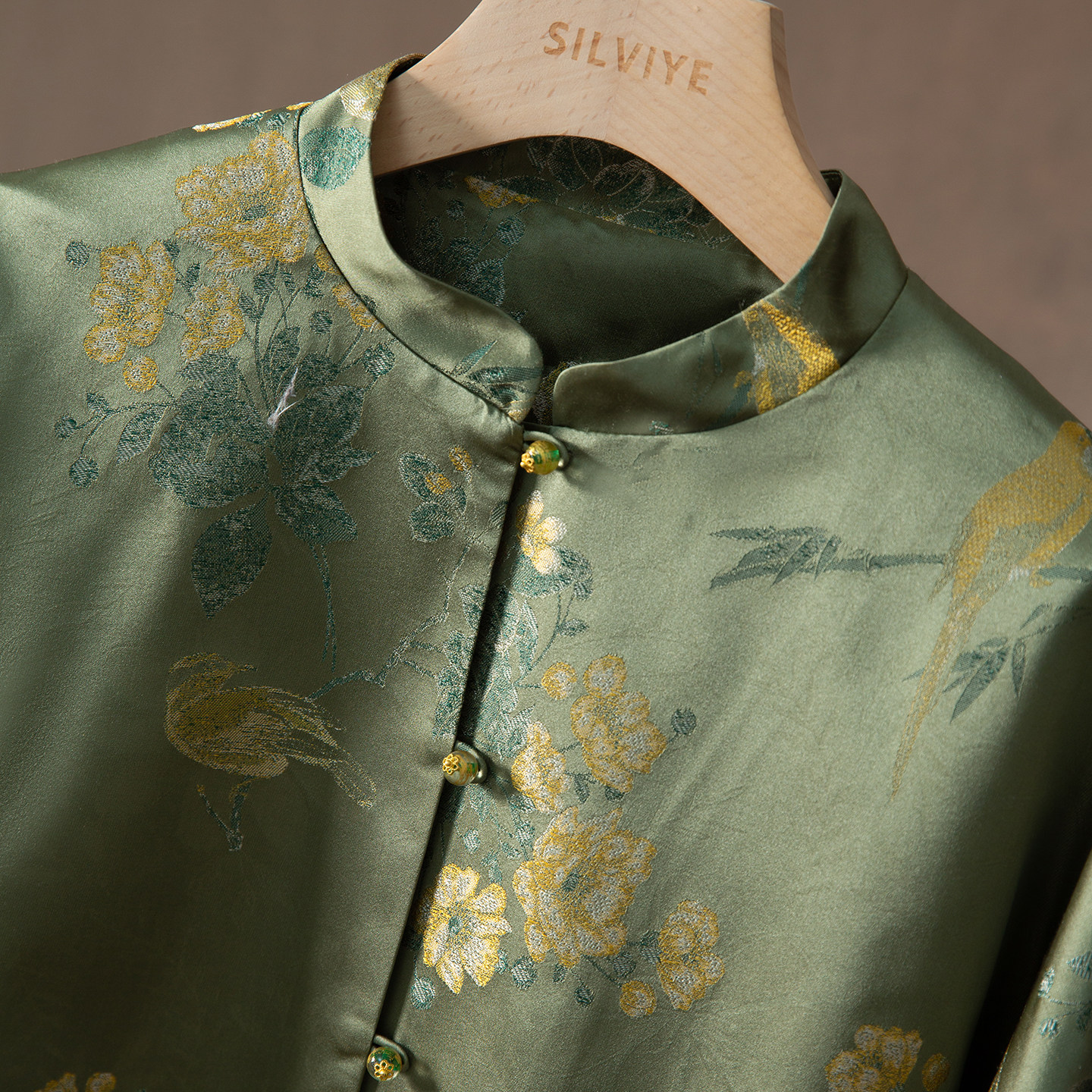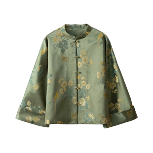 外套女立领上衣春 宋锦提花真丝开衫 SILVIYE溯也 100%桑蚕丝新中式