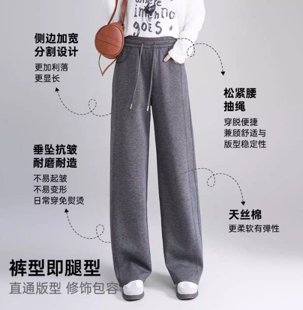 阔腿裤 五只白鹅高端天丝空气层樱花窄版 新款 2666春季 女垂感 直筒裤