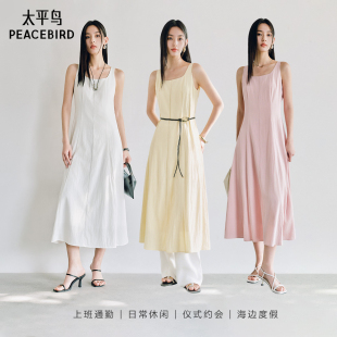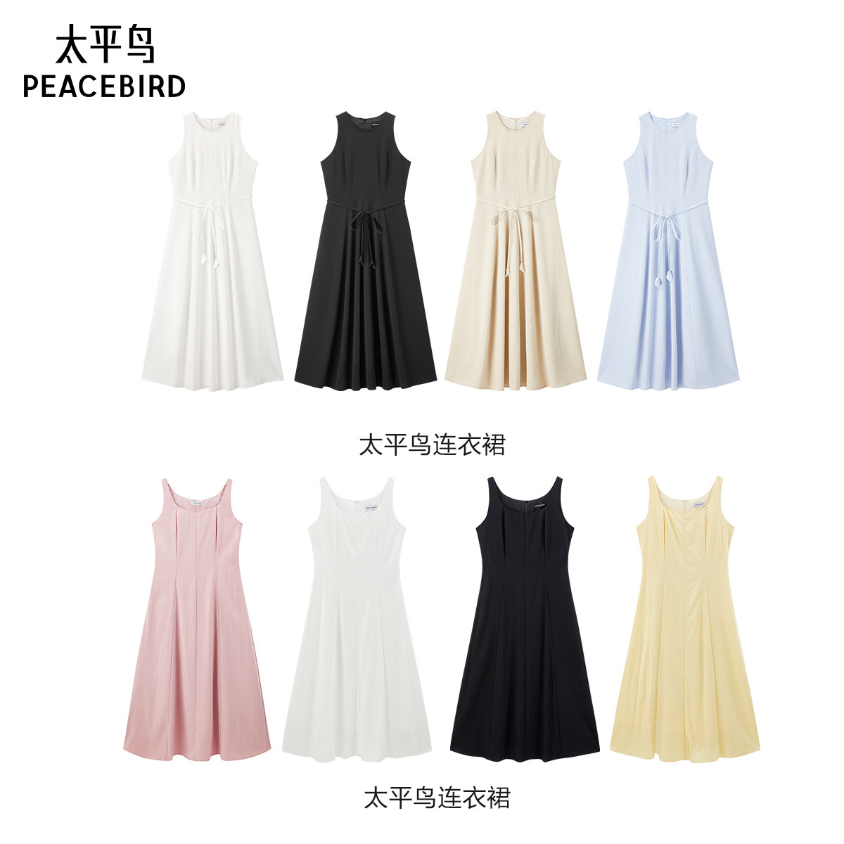 圆领方领连衣裙 太平鸟简约通勤连衣裙无袖 达播专属