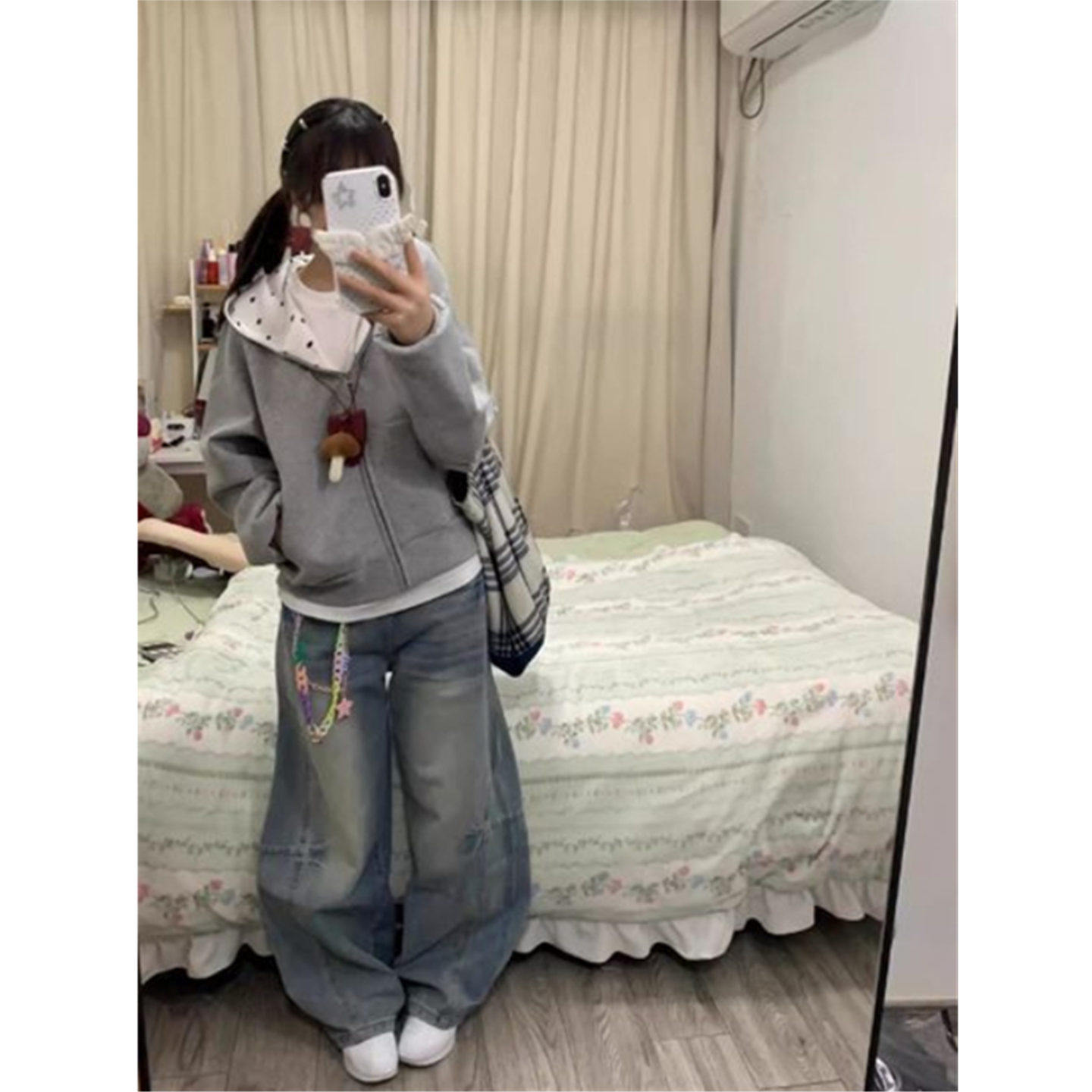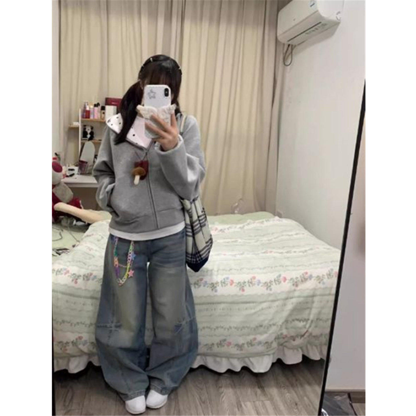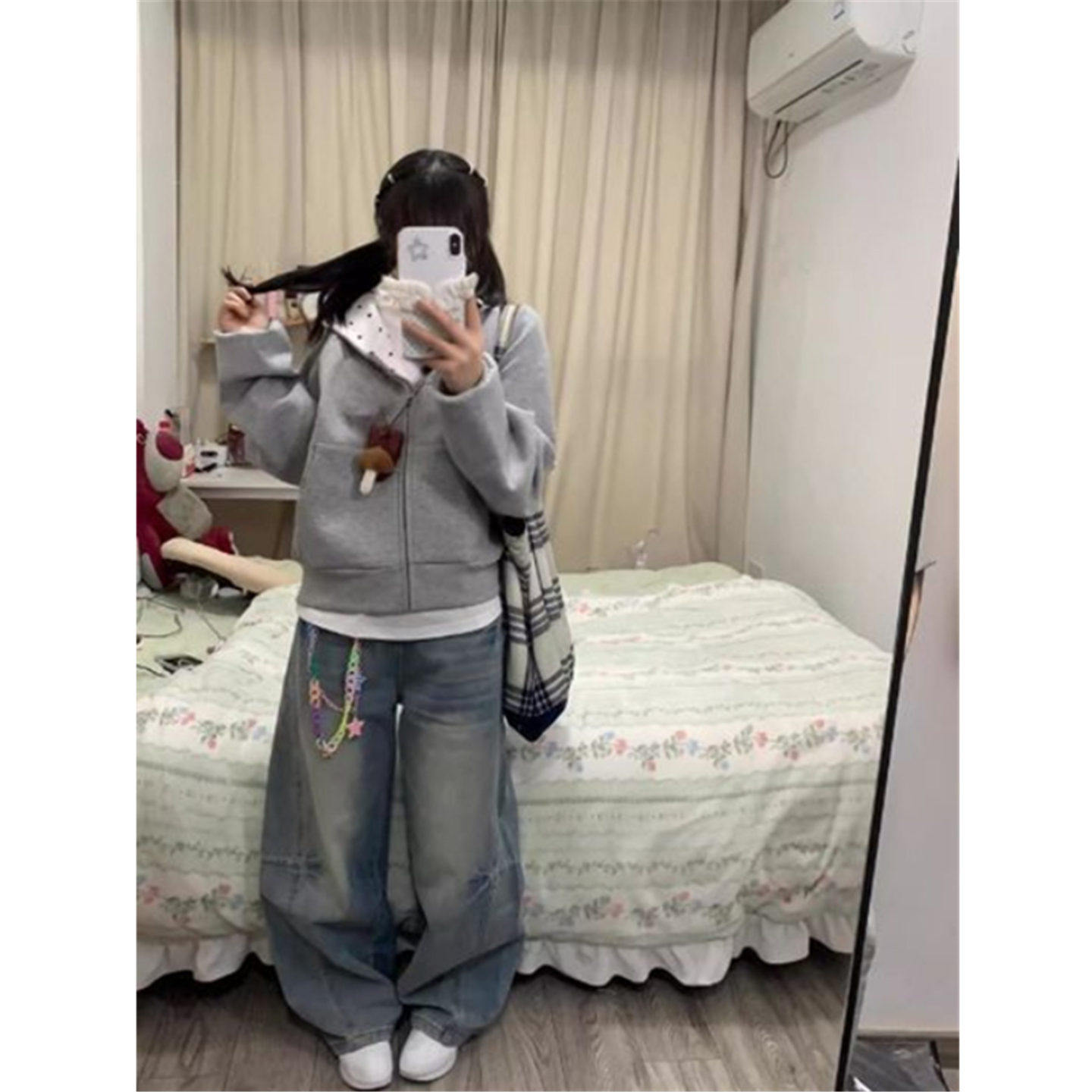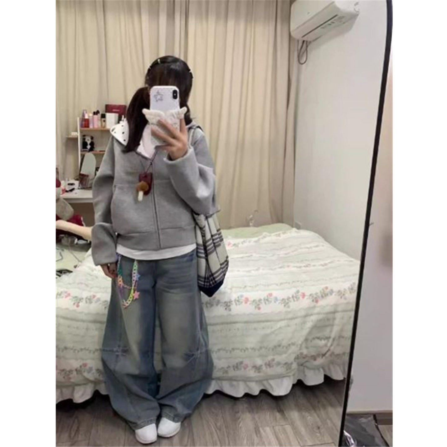 上衣 短款 小狗刺绣波点连帽卫衣女春秋设计感小众薄款 外套宽松开衫
