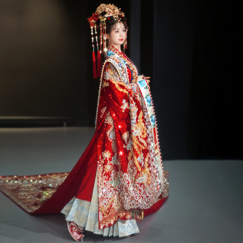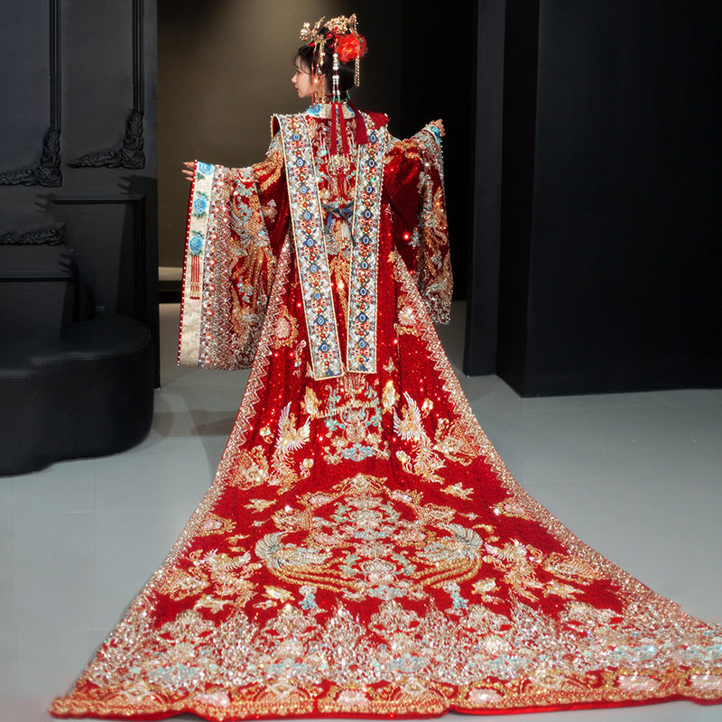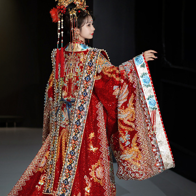 重工宋制汉服婚服新娘新郎中式 结婚嫁衣婚礼明制凤冠霞帔拖尾礼服
