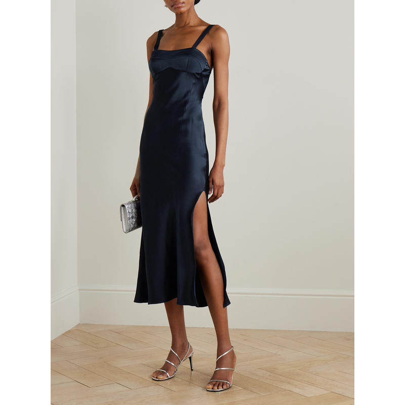 中长连衣裙 Victoria 女士 维多利亚·贝克汉姆 拼接缎面 Beckham