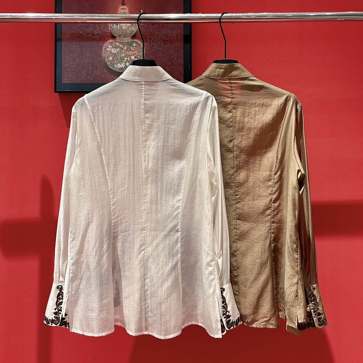 w249 轻奢提花撞色线迹收腰设计感上衣小衫 布谷 26年春款