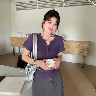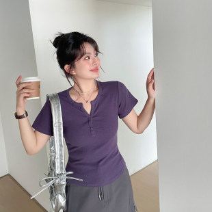 韩系风短款 超好看温柔独特上衣胖mm大码 正肩t恤 2026新款 春夏女装