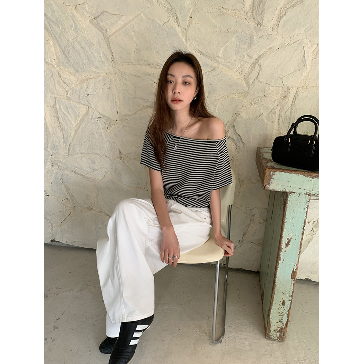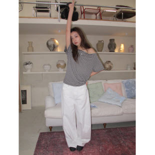 女宽松直筒廓形休闲裤 白色分割线弯刀牛仔裤 百搭攻略 SIXI四喜家