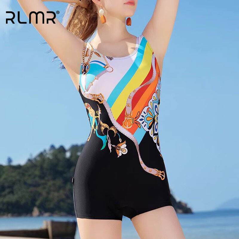 印花泳装 RLMR轻奢连体平角泳衣女遮肚显瘦保守新款 泡温泉度假大码