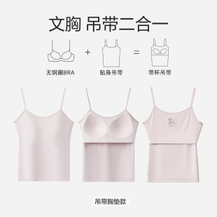 红豆男女士吊带背心莫代尔棉女生带胸垫内搭修身 运动基础打底上衣