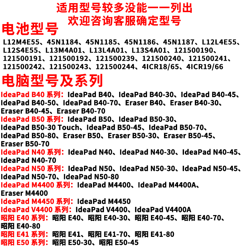 N40 N50 昭阳 全新适用联想 E50 B50 E40 L12M4E55笔记本电池 B40