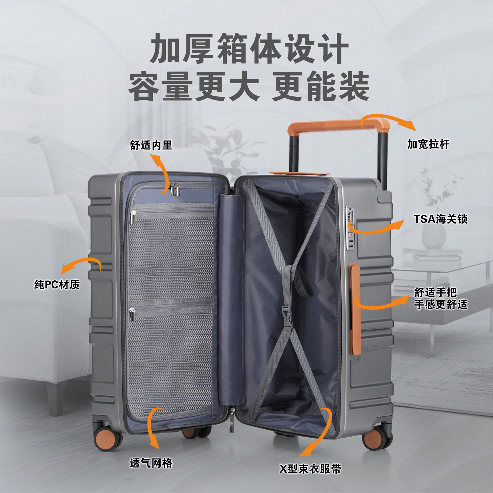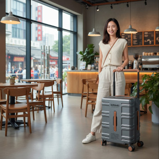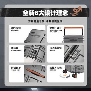 新款 工业风宽拉杆纯PC行李箱海关锁拉杆箱登机箱大容量轻便男女