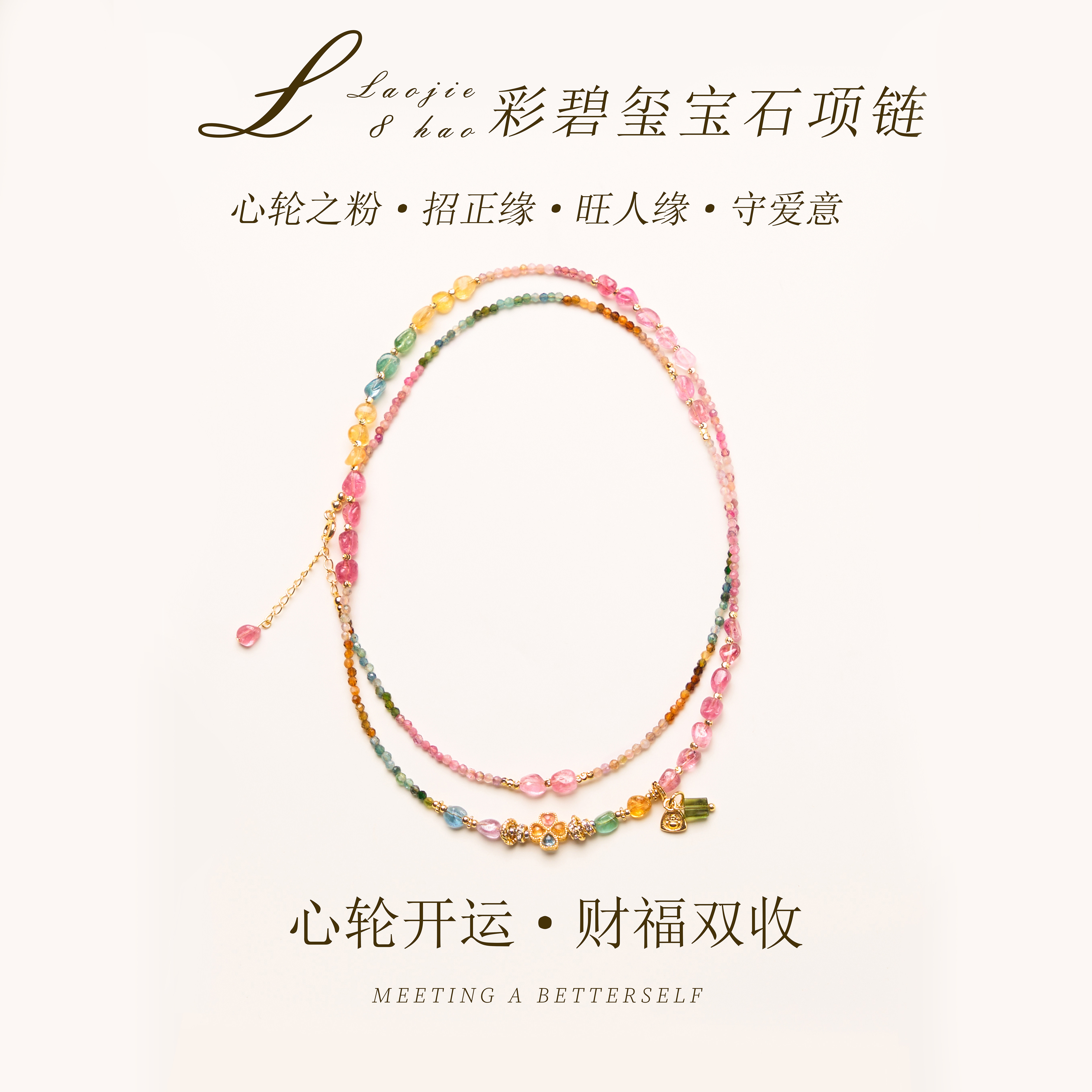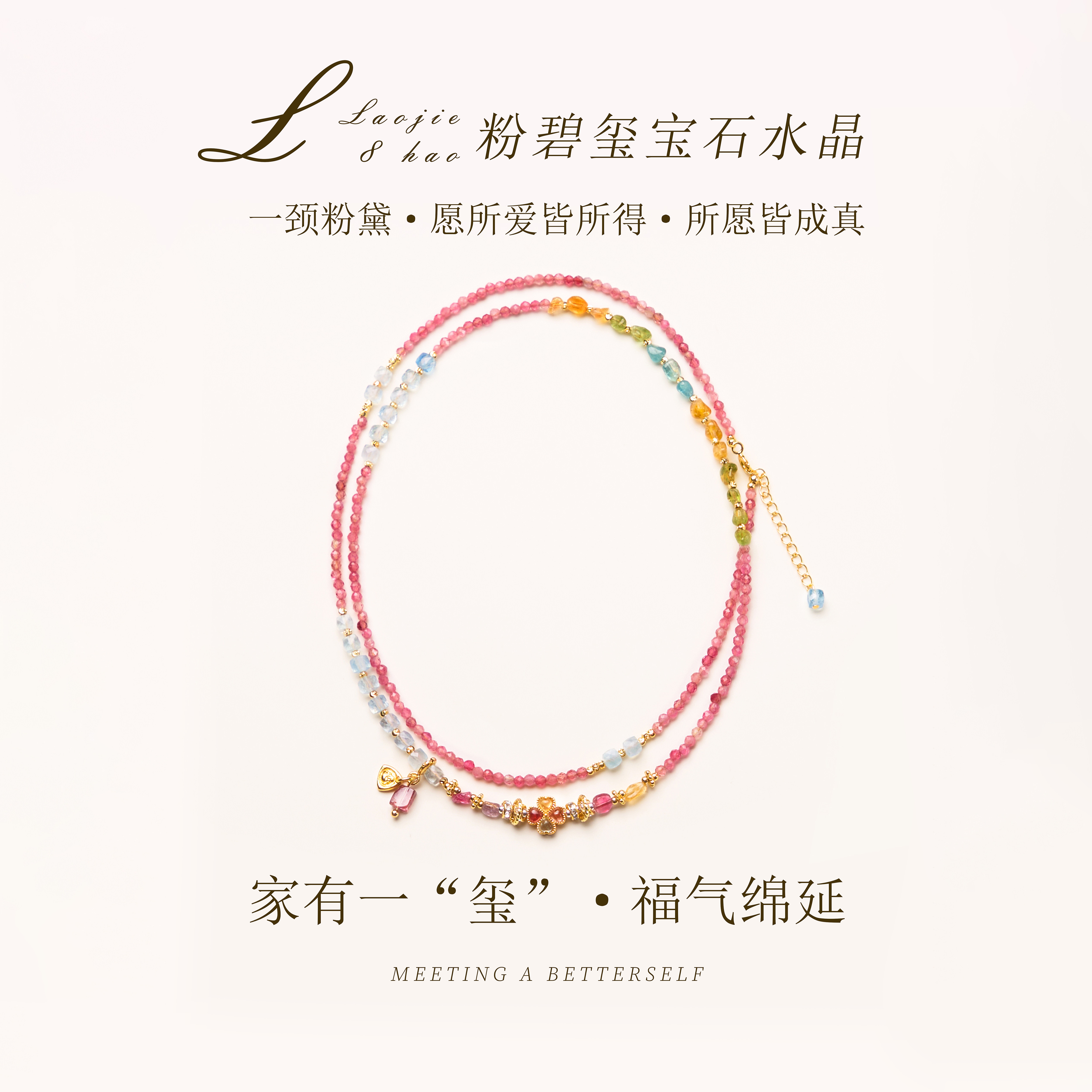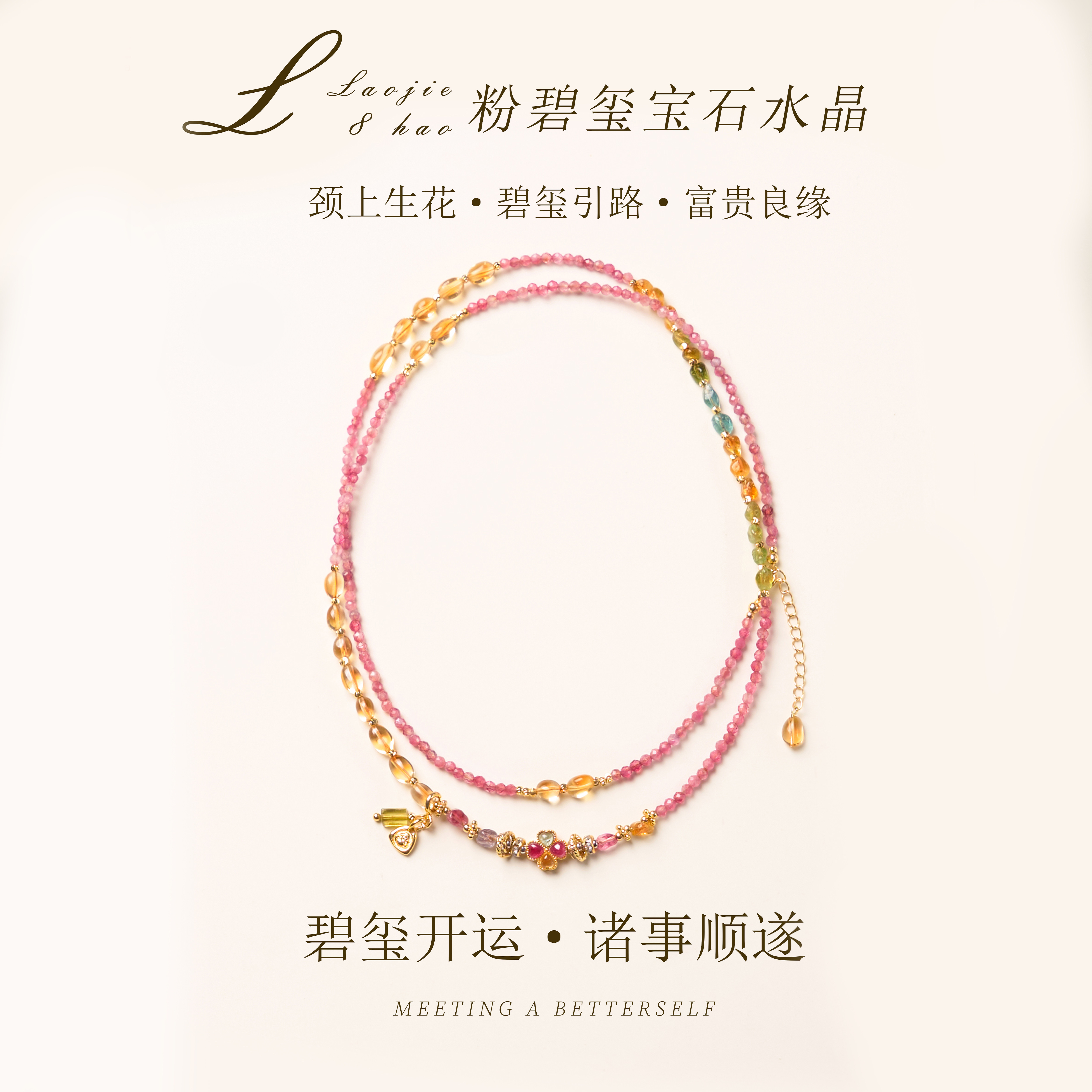 天然粉碧玺项链颈间粉运正缘自来百搭款 轻奢闺蜜礼物 叠戴手链女款