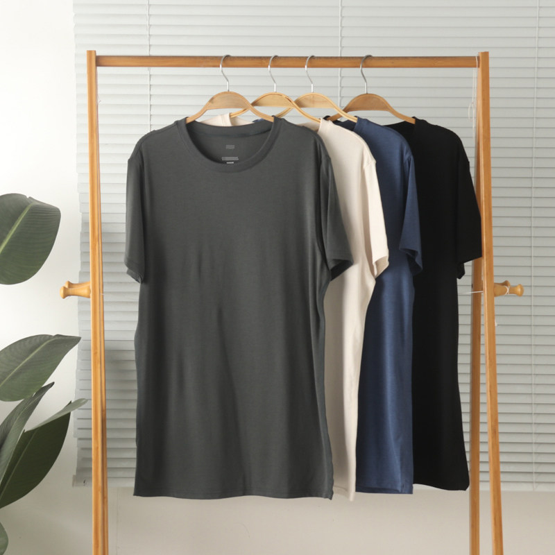 外贸男莫代尔棉宽松薄款 大码 短袖 大汗衫 夏 T恤外穿家居服打底衫 软