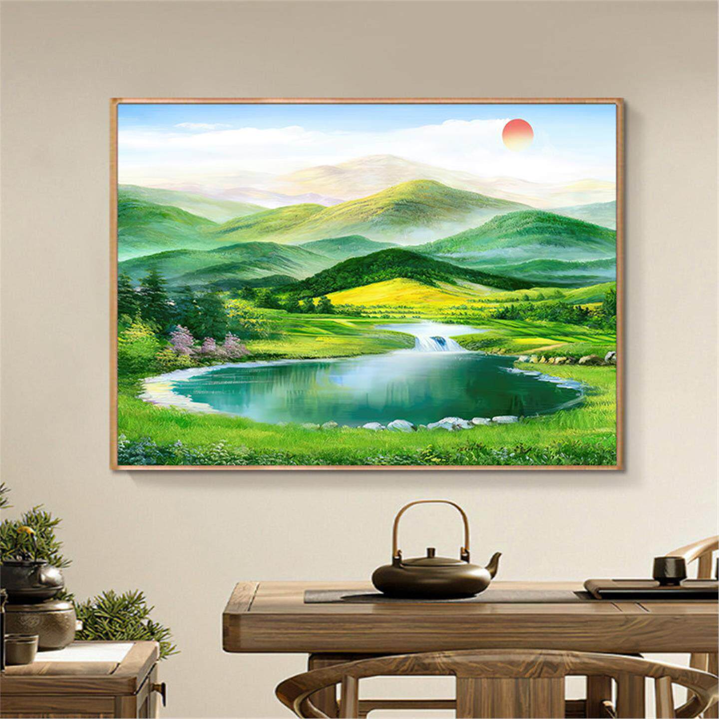 聚宝盆山水画客厅挂画沙发背景墙装 饰画青山绿水风景壁画招财油画