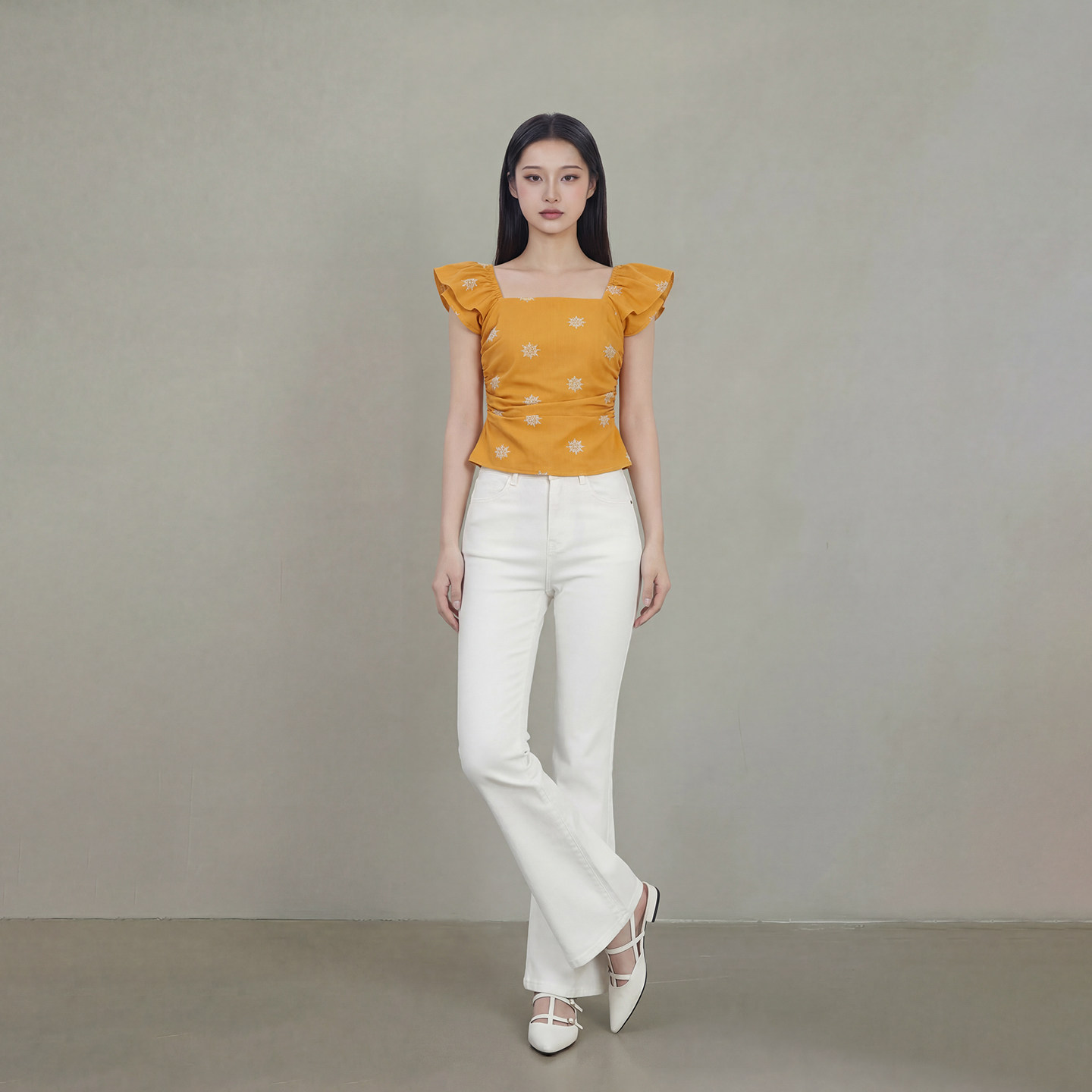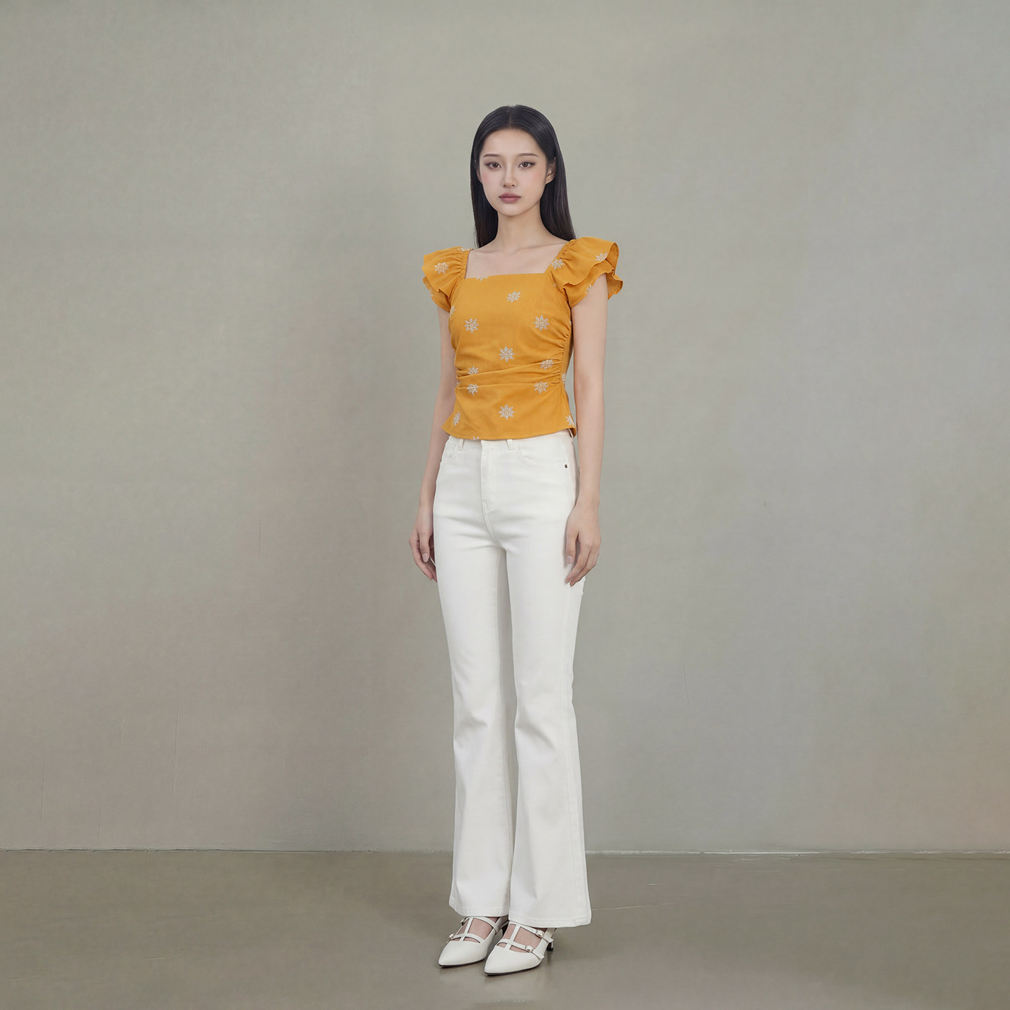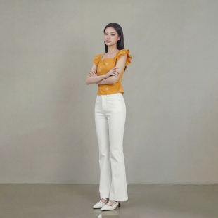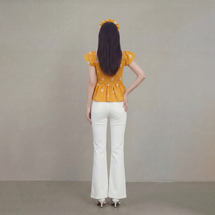 上衣薄款 艾格芒果黄T恤女泡泡袖 显瘦百搭短袖 修身 印花2026夏新款