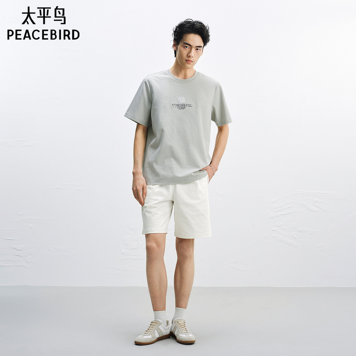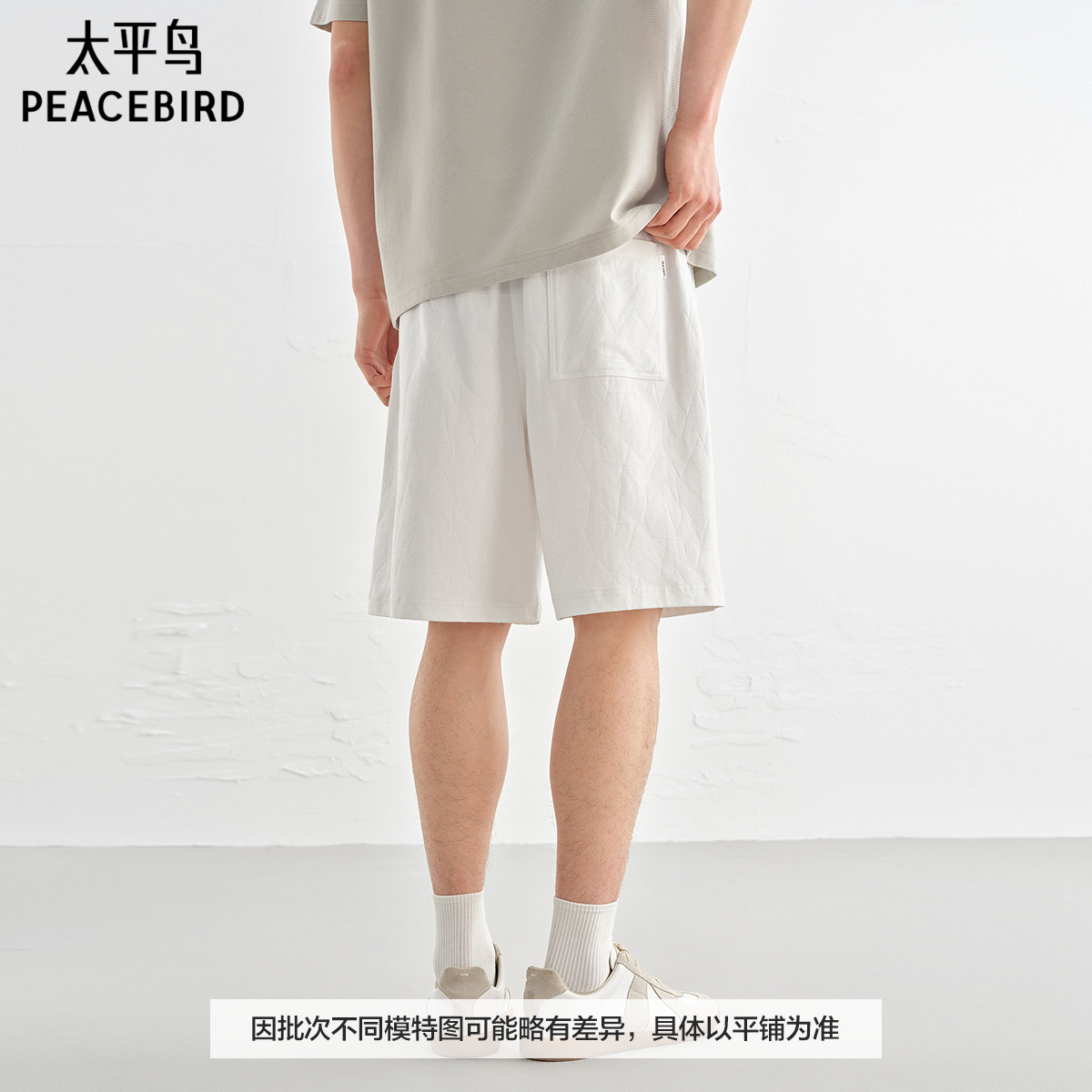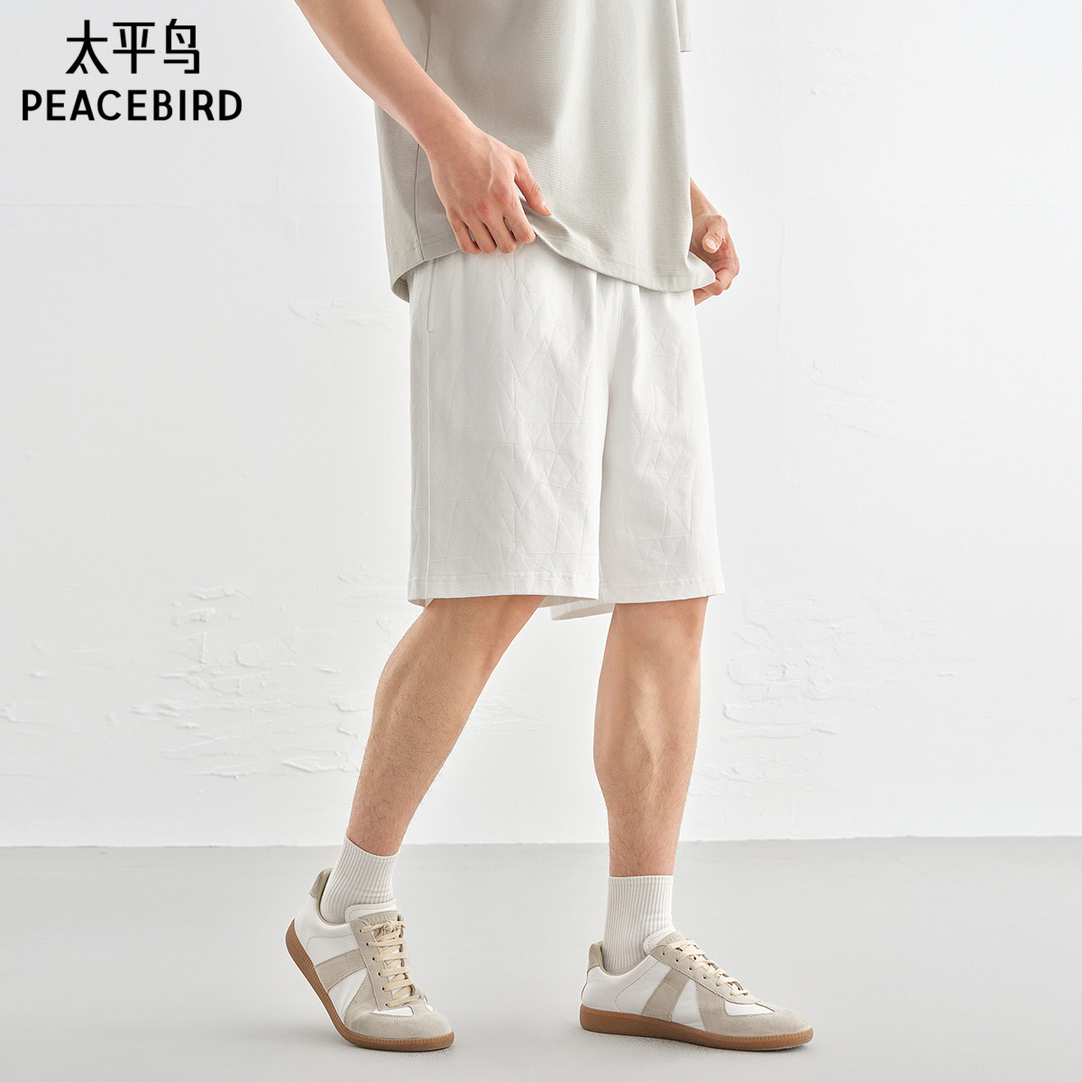 五分裤 太平鸟男装 贴袋缝标浅色中裤 纯色中短裤 男 暗纹提花休闲裤