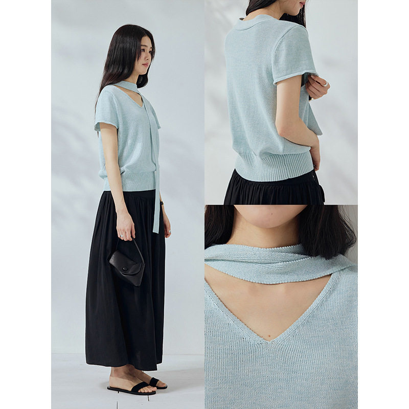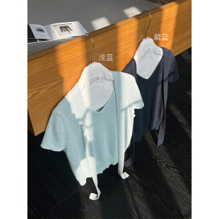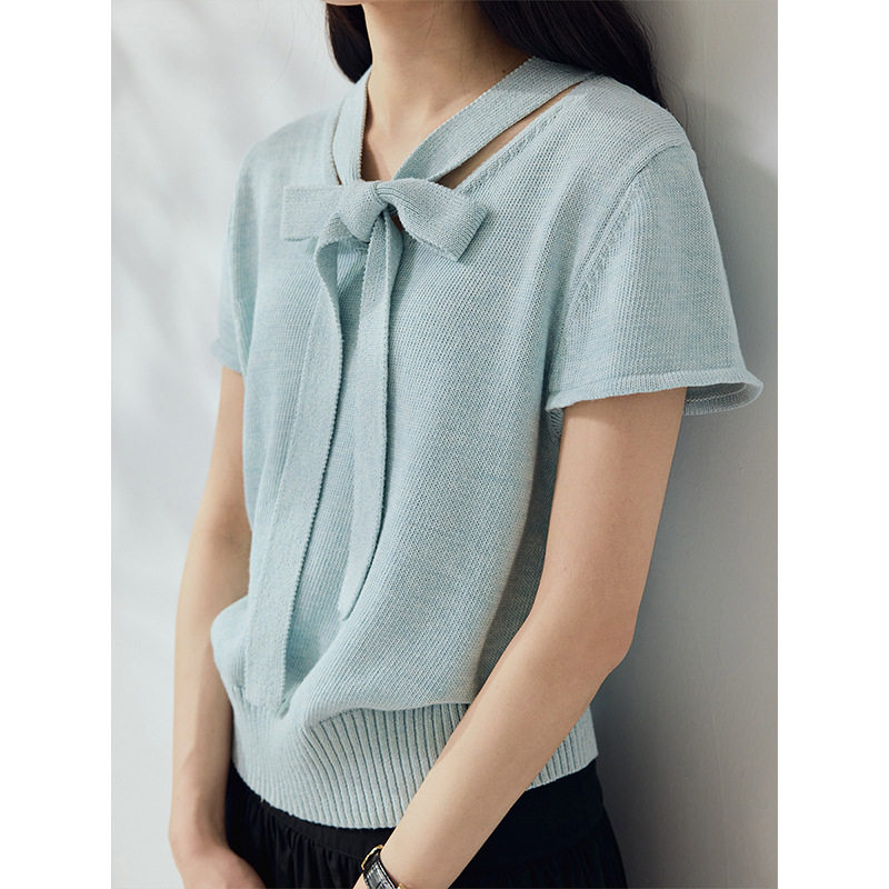 针织衫 和纸纱飘带V领宽松短袖 10287 自带温柔腔调 3.24采购节