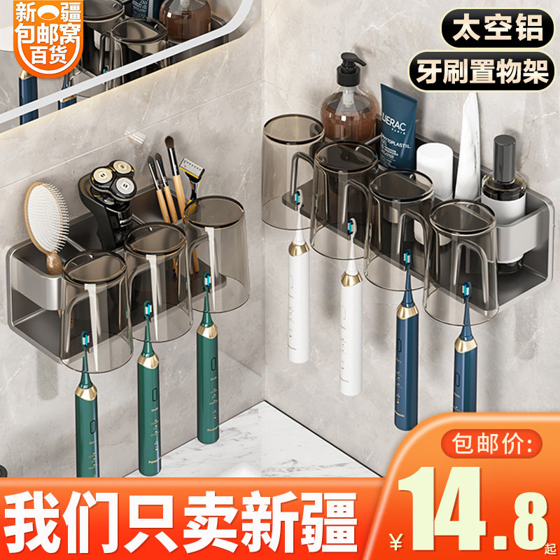 新疆 牙刷置物架免打孔卫生间漱口杯牙膏壁挂收纳洗漱台牙刷架 包邮