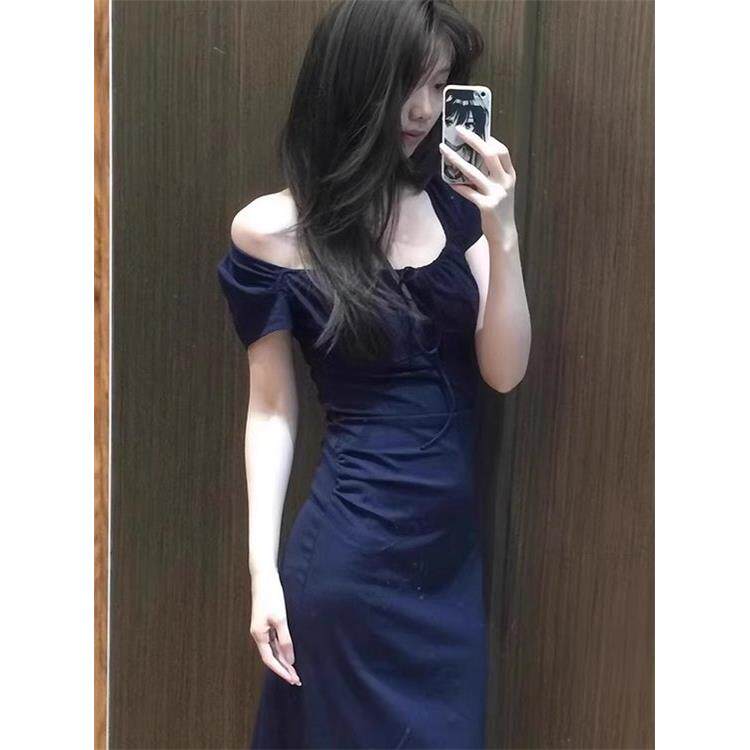 法国罗杰跑道系带领口短袖 高腰短紧身长裙 连衣裙娇小修身