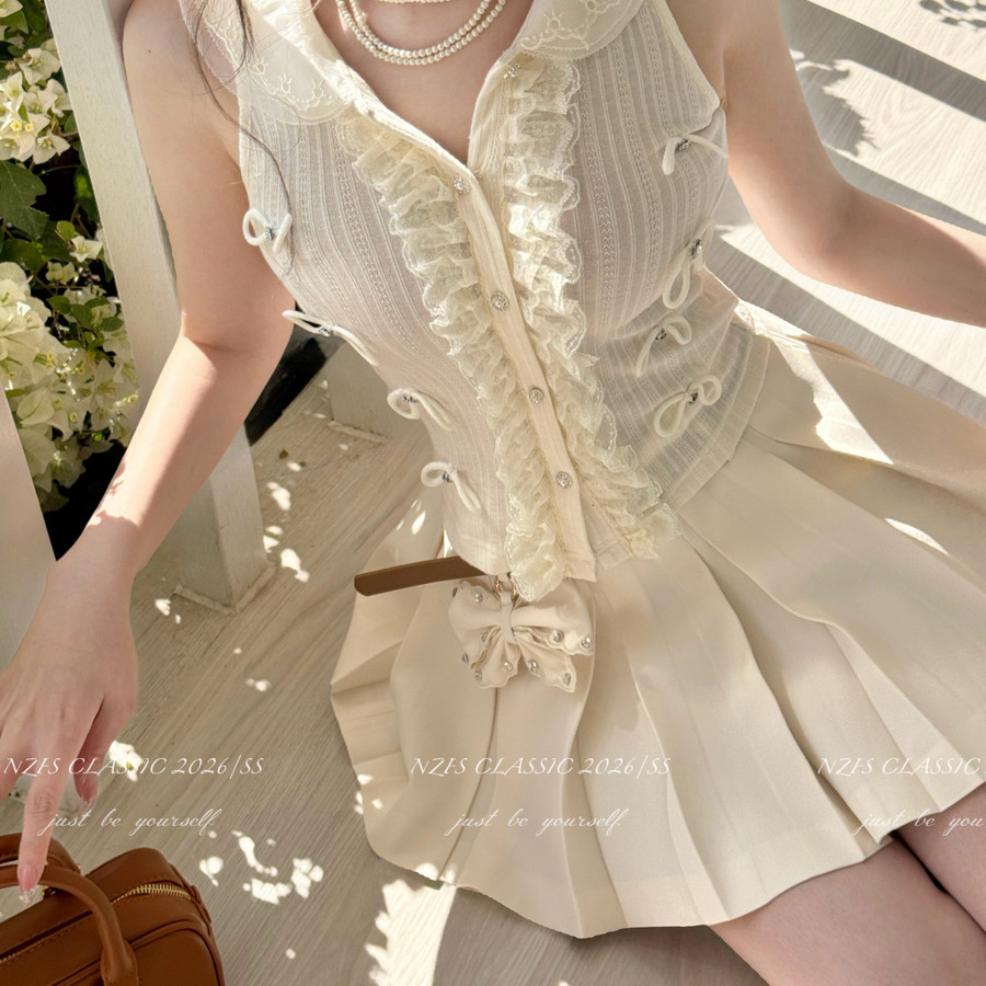 配腰带 新名媛千金风百搭重工蝴蝶结百褶半身裙 7290 楠子家 NZFS