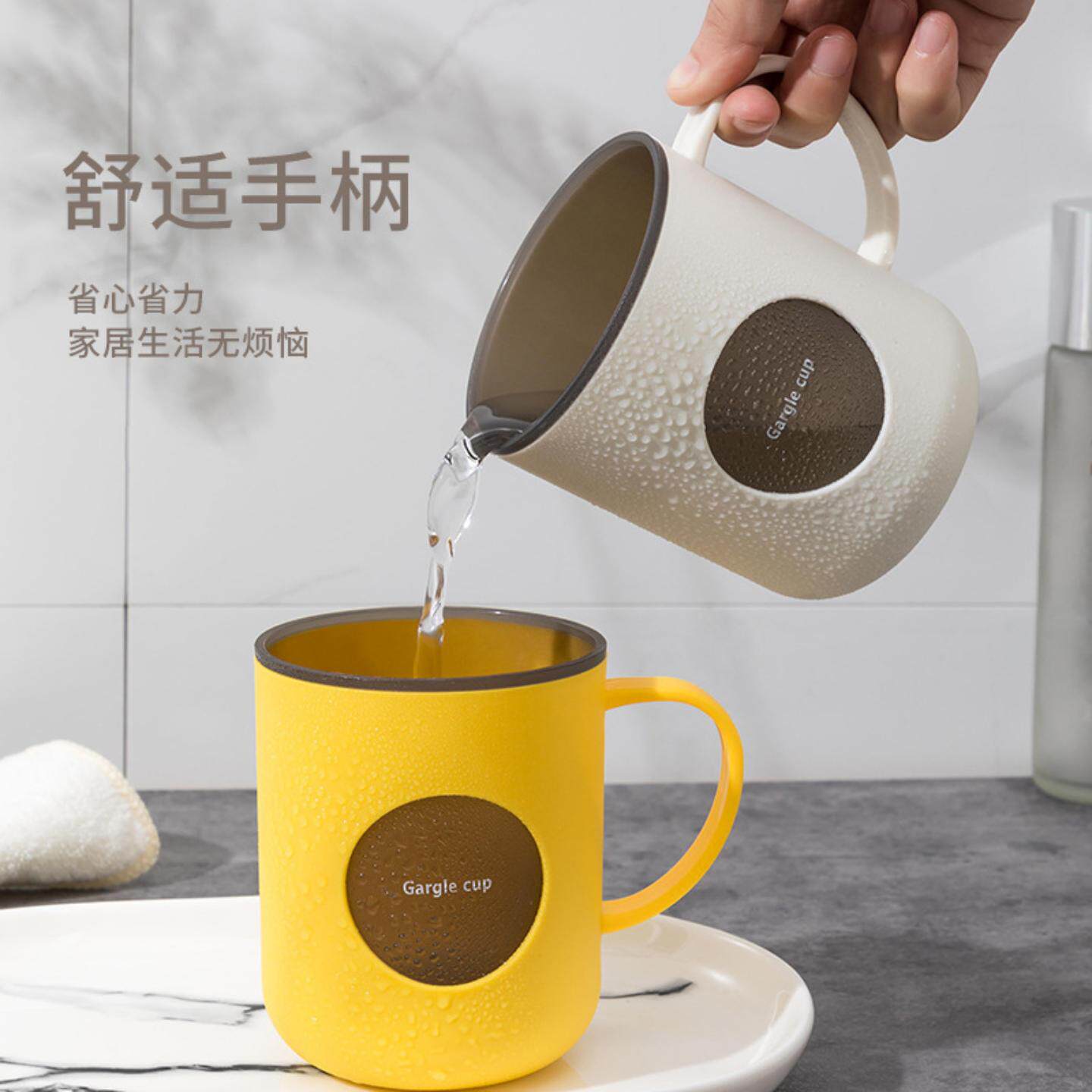 双层撞色漱口杯家用浴室刷牙杯带手柄可爱情侣杯子耐摔洗漱牙缸杯