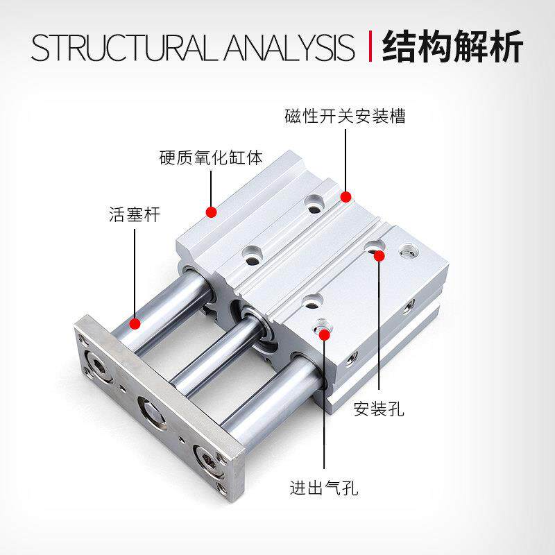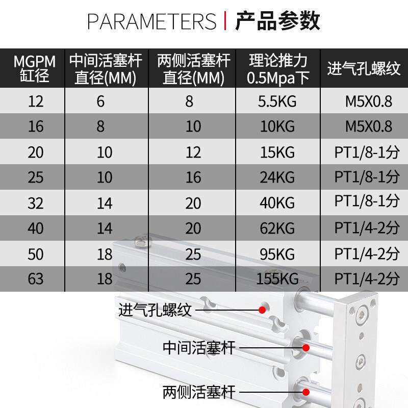 25X50X75X100X125X150 气动带导杆三杆MGPM三轴气缸32