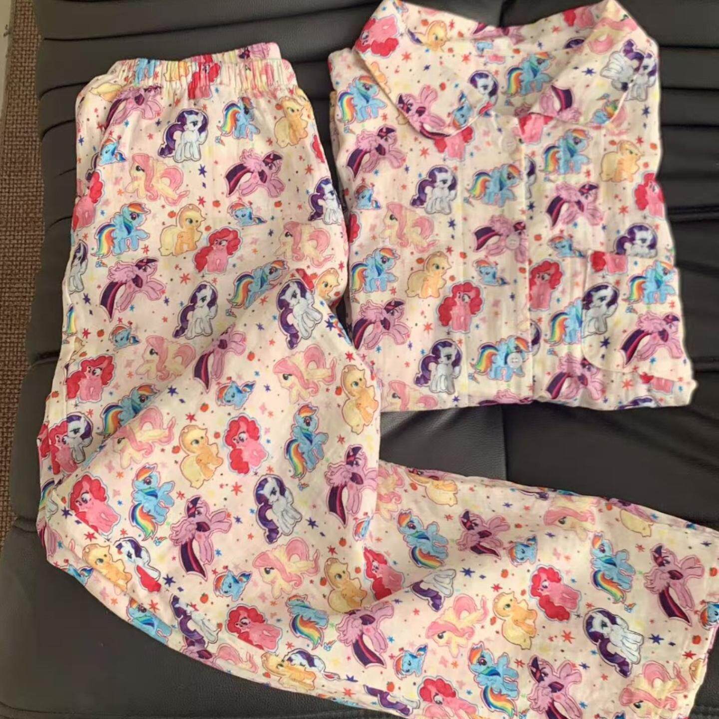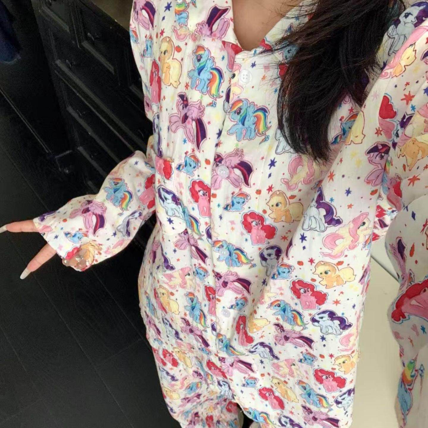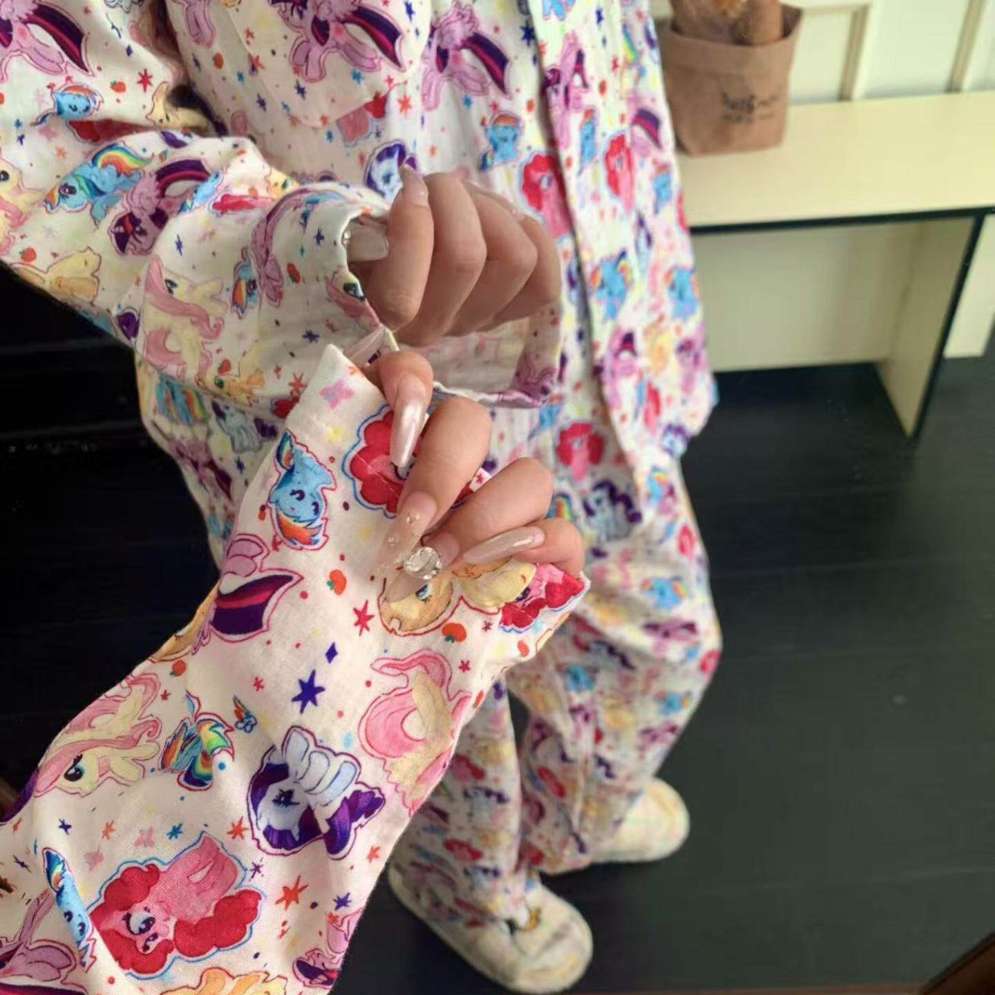 超可爱 类全棉双层纱翻领可爱卡通睡衣宽松居家服遛弯