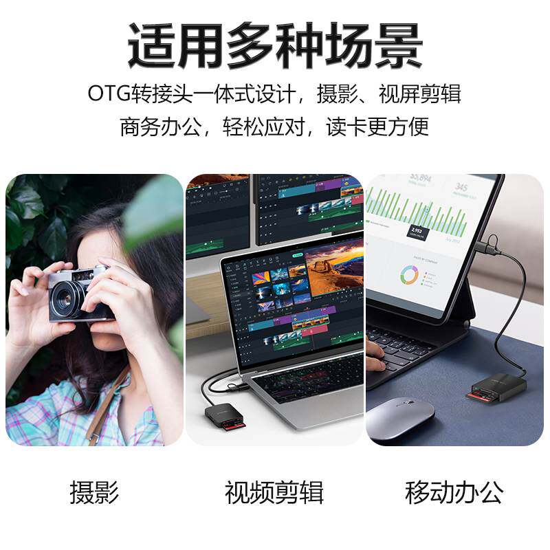 能适usb2.0高速读卡器佳能适用于苹果iphone15手机单反相机读取器tf卡sd卡多合一读卡器通用转接typec电脑U盘