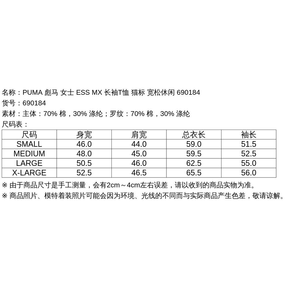 长袖 彪马 宽松休闲 猫标 T恤 ESS 女士 日本直邮PUMA 1h可退