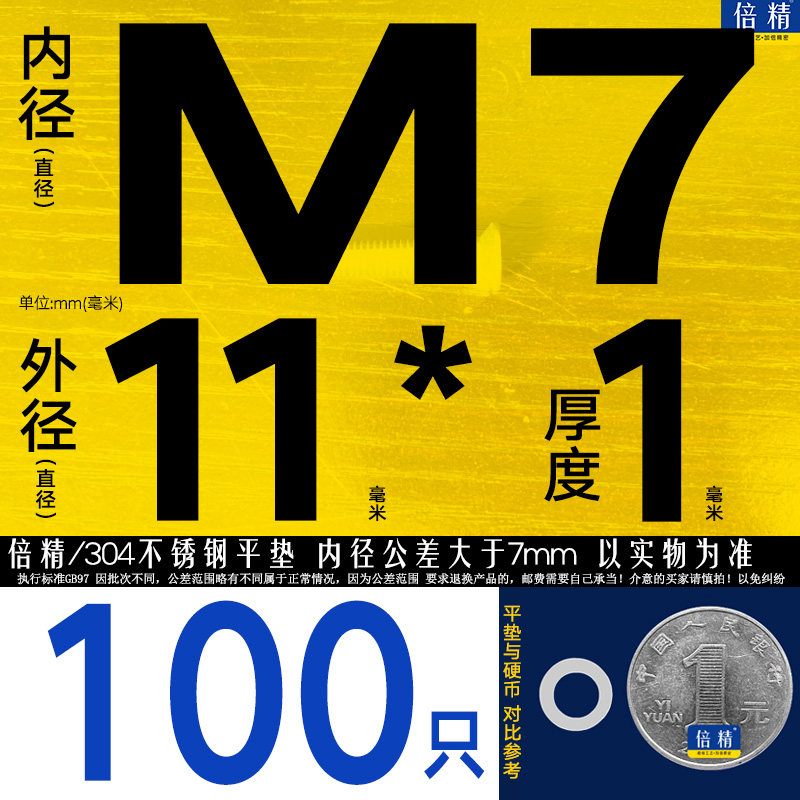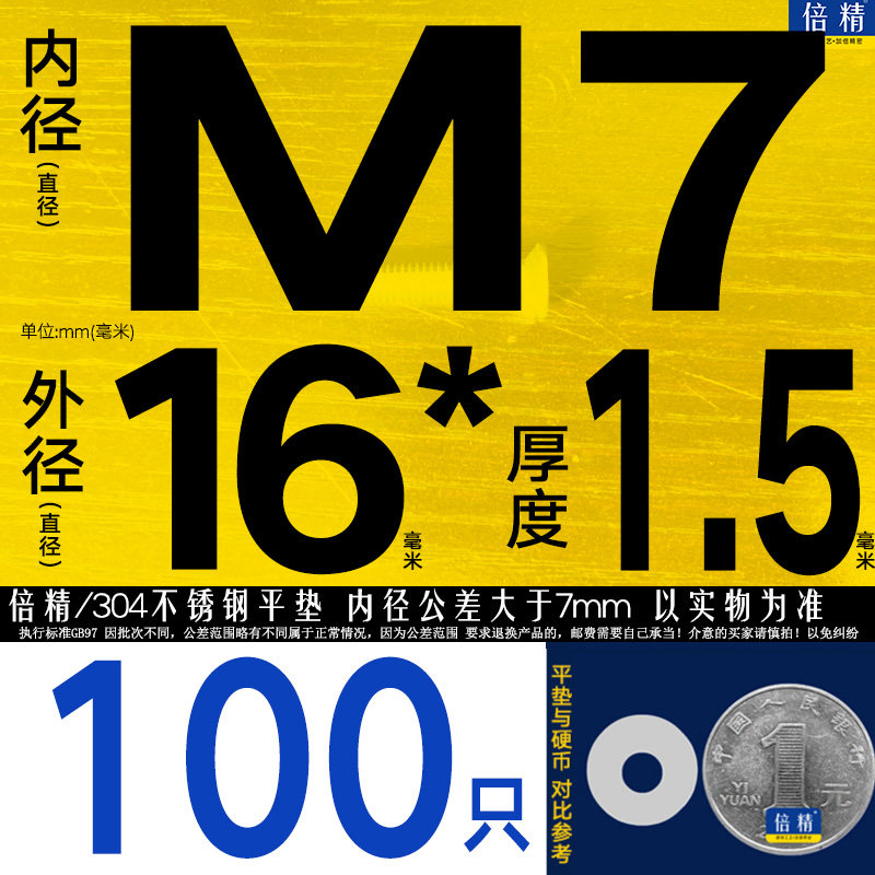 镀白锌平垫垫圈加厚金属铁碳钢螺丝垫片M2 304不锈钢 M50 M6M7