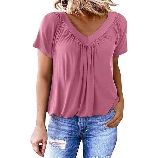 V领插肩袖 个性 抽褶休闲日常家居T恤 新款 2025亚马逊欧美跨境热卖