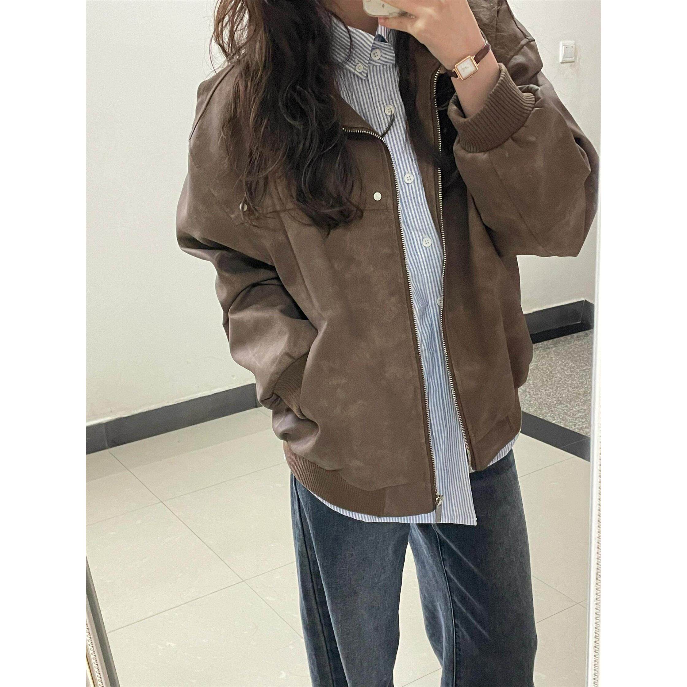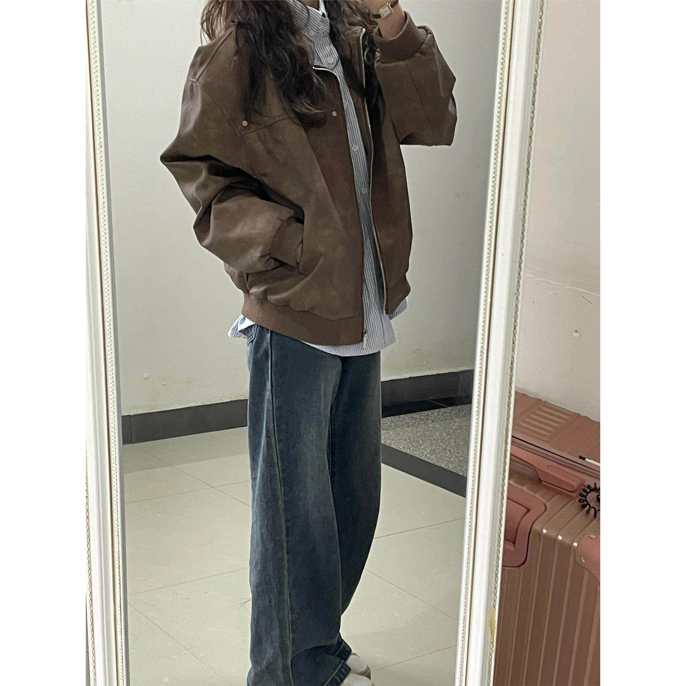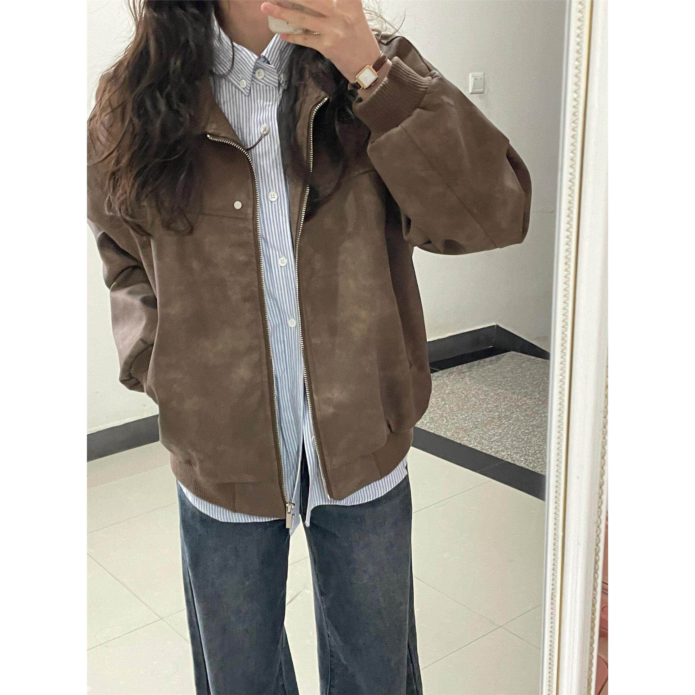 覆古小众穿搭宽松学生薄款 美式 外套 新款 美拉德皮衣夹克女2025秋季