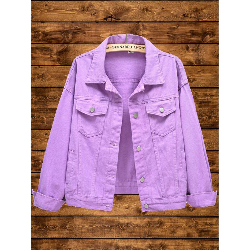 夹克潮 上衣小个子大码 韩国粉红色牛仔外套女春秋新款 宽松休闲短款
