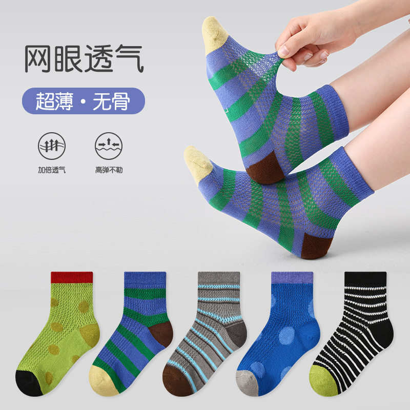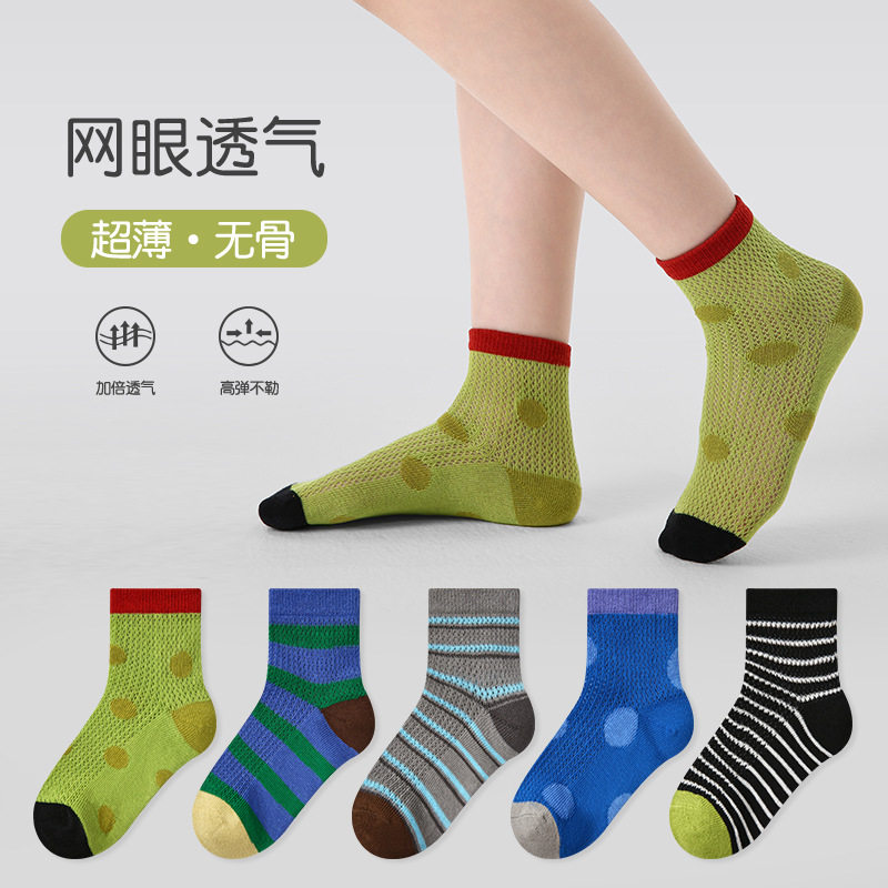 ZYZ儿童袜子2026春夏薄款 条纹波点卡丝袜棉透气运动网眼男童袜子