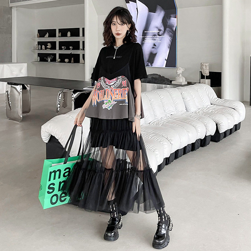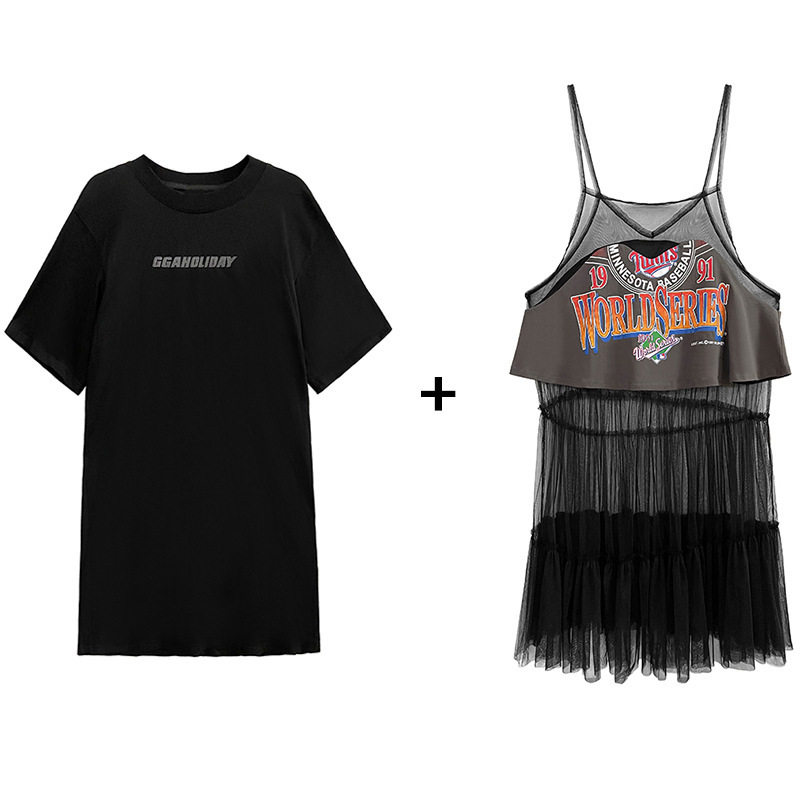 休闲时尚 宽松短袖 两件套装 薄款 上衣t恤 女夏季 今年流行特惠韩版