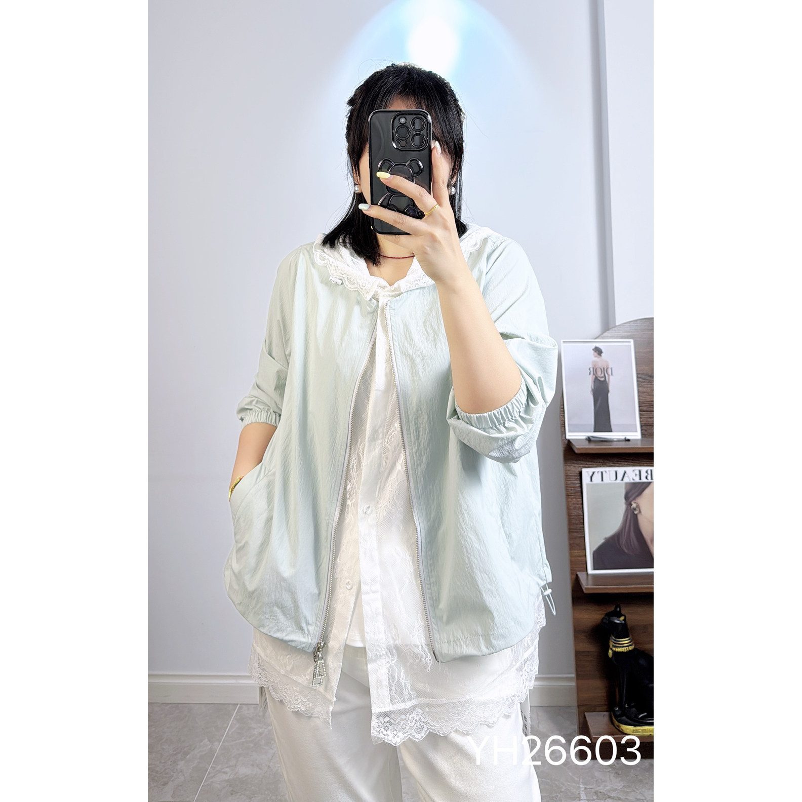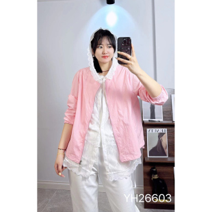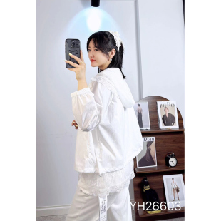 蕾丝连帽假两件防晒衫 210斤胖妹m长袖 外套女 香港芸卉26603加大码