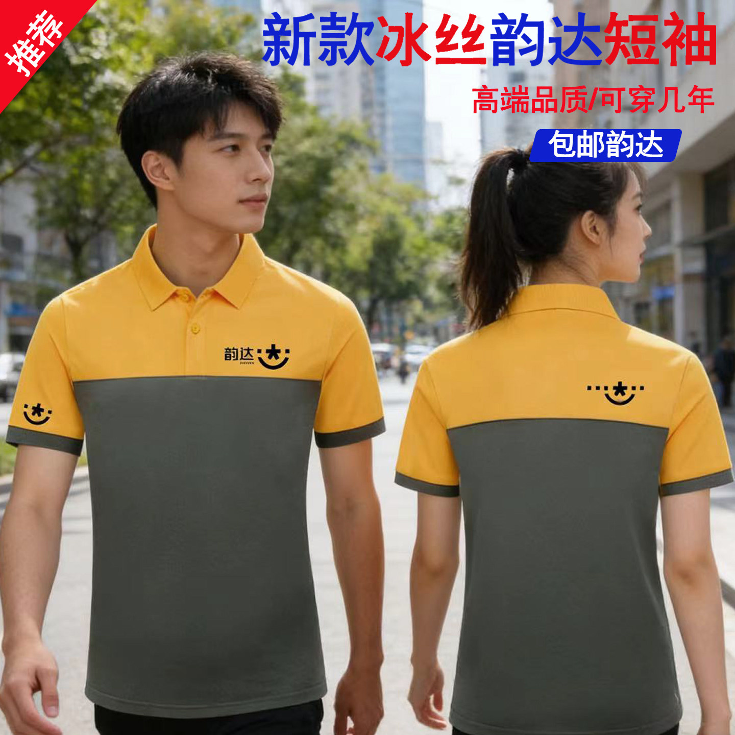 广告文化衫 新款 冰丝男女短袖 夏季 定制印字 官方韵达快递工作服短袖
