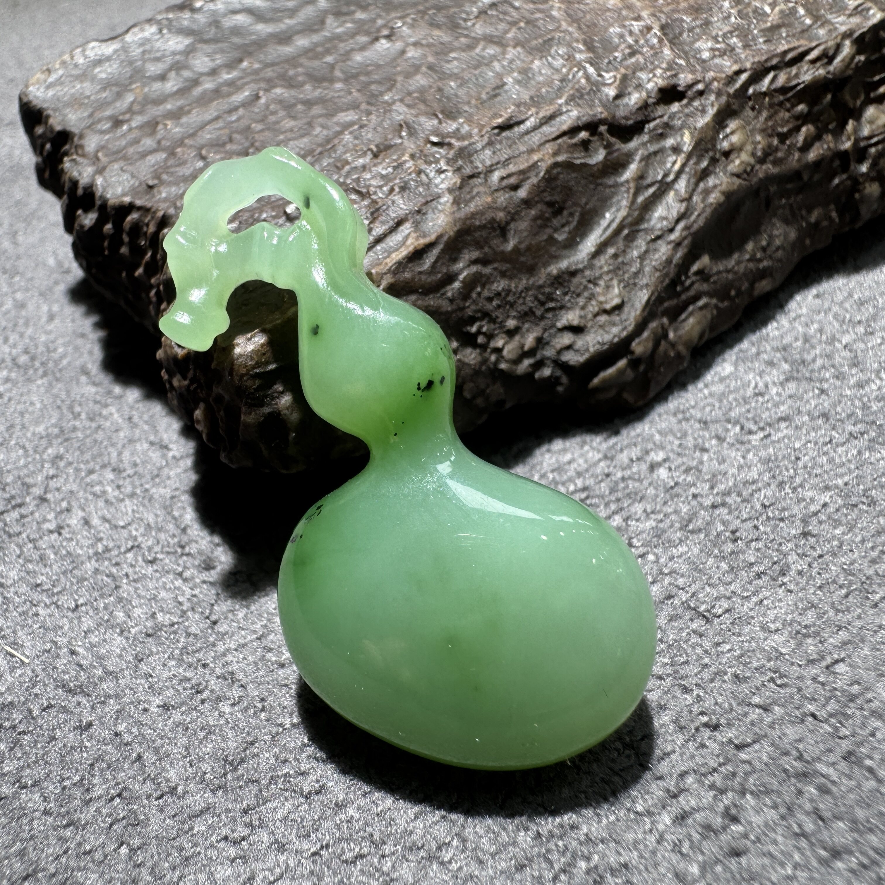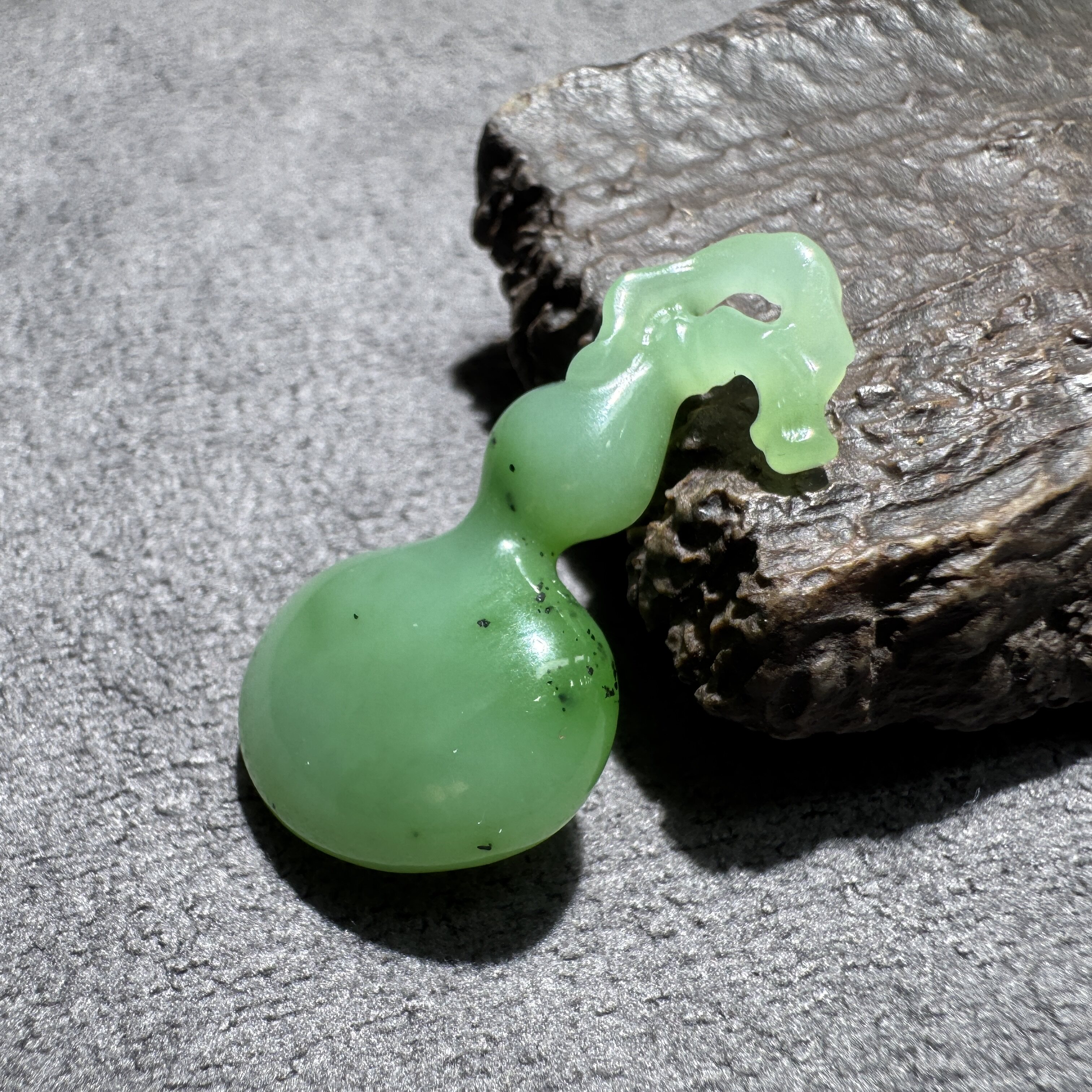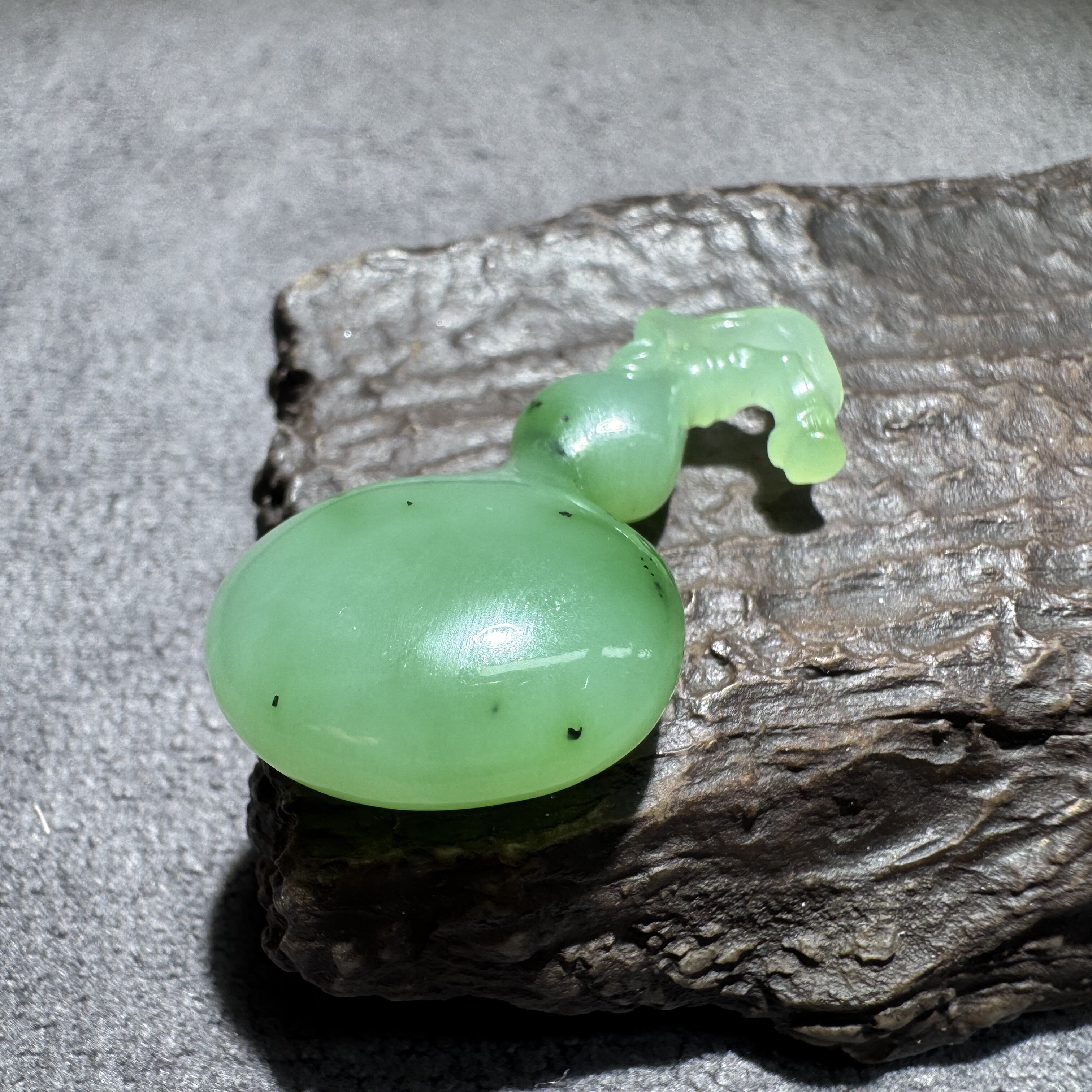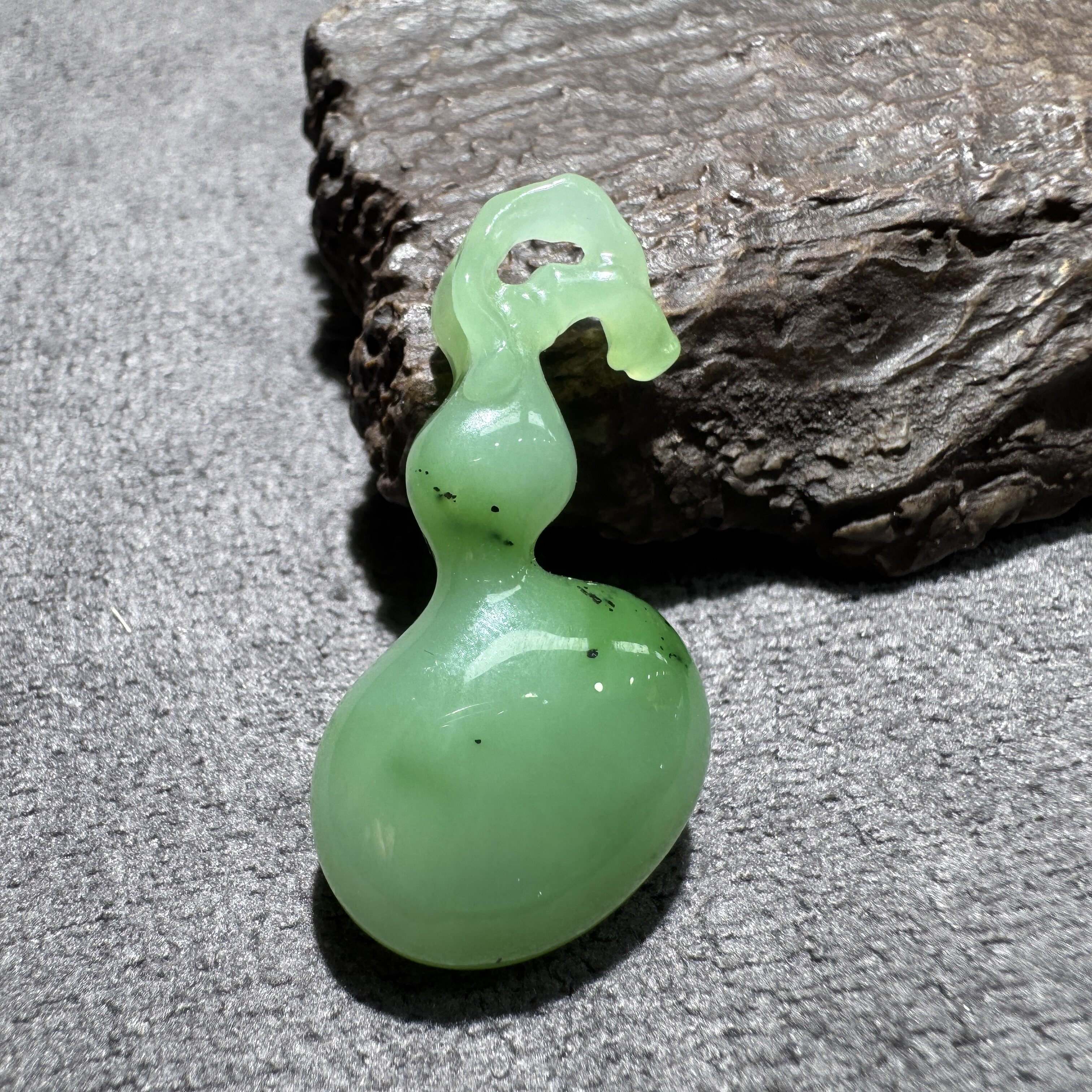 放大漏方言和田玉老坑俄罗斯乌兰海苹果绿碧玉起荧光葫芦吊坠S6