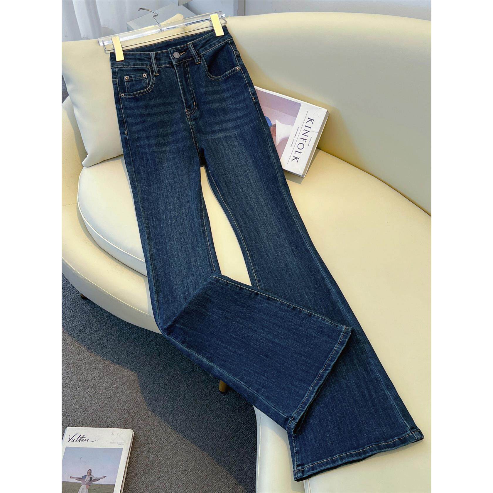 弹力马蹄喇叭裤 修身 女高腰显瘦2025秋冬新款 艾格深蓝色微喇牛仔裤