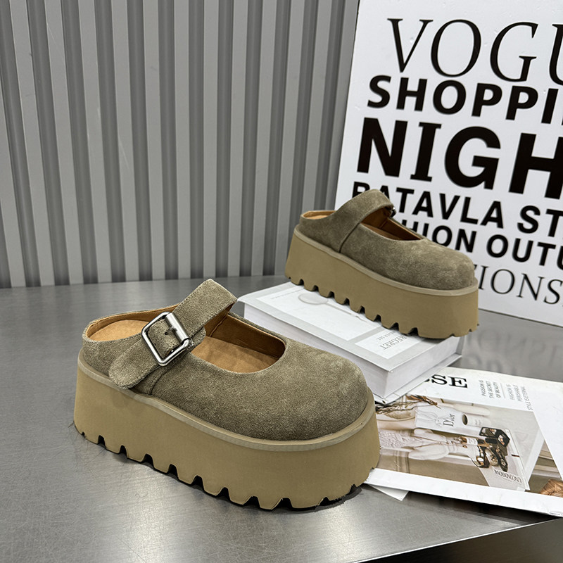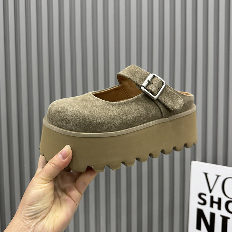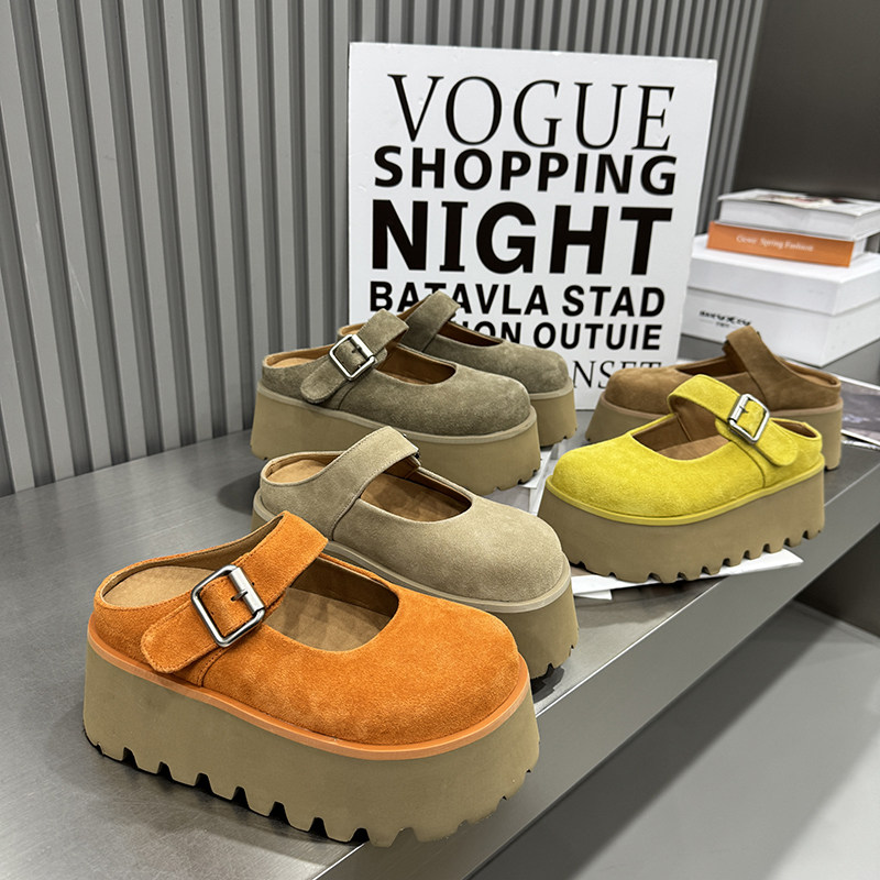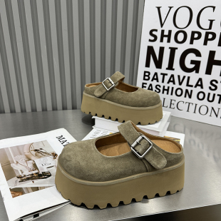 女外穿一脚蹬增高包头半拖鞋 拖松糕鞋 春季 鞋 韩版 厚底真皮凉鞋