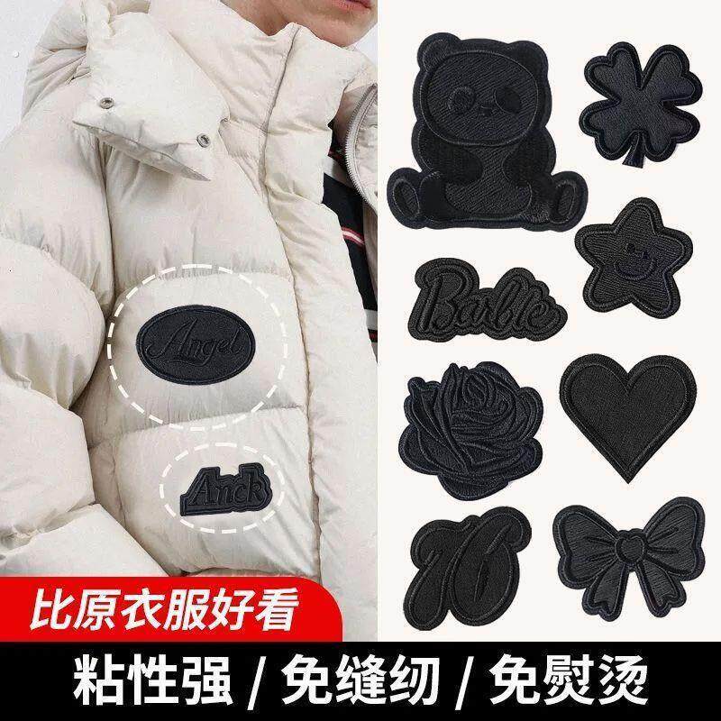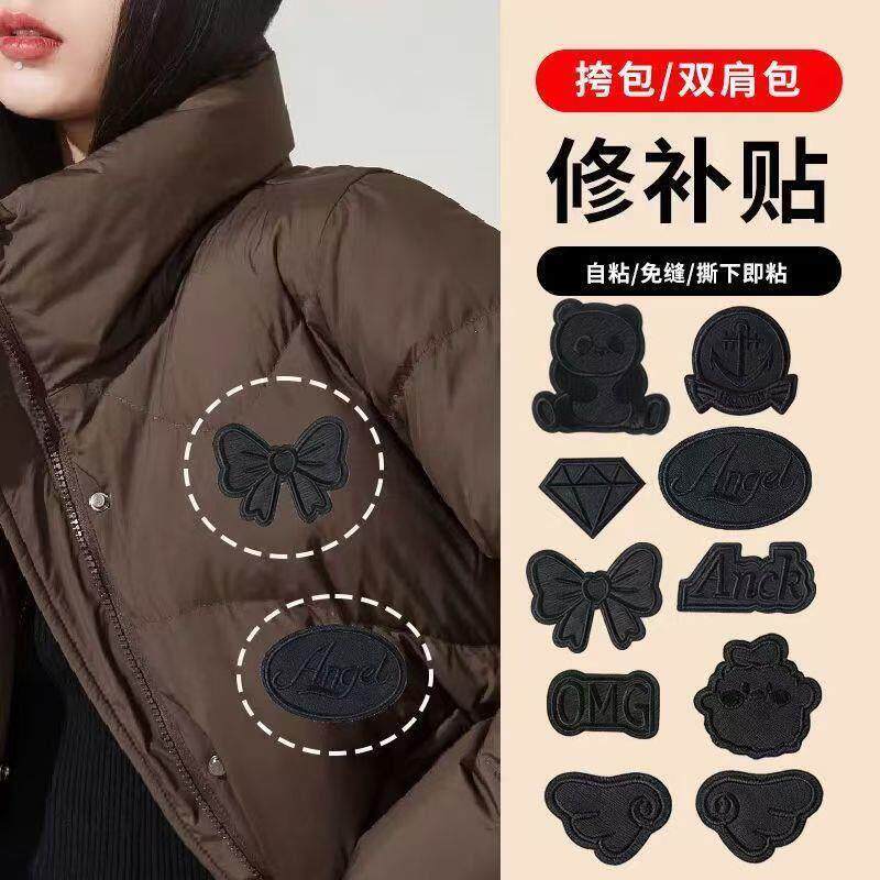 免缝黑色补丁贴自粘衣服皮衣专用刺绣贴布羽绒服破洞无痕修补布贴