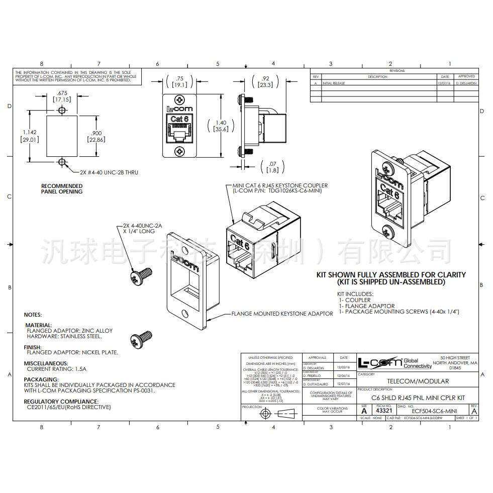 SC6 ECF504 MINI 6类微型RJ45耦合器套件 连接器现货 屏蔽 COM