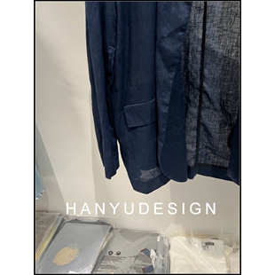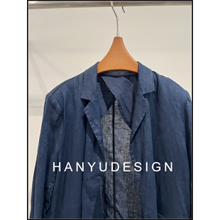 100%苎麻深蓝色显白翻领外套 26早春新款 韩钰DESIGN