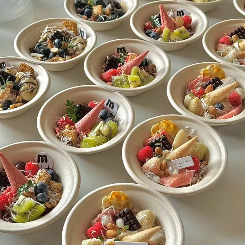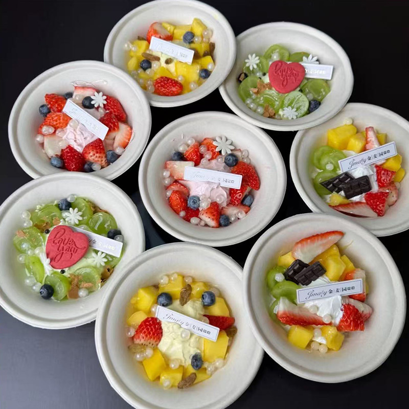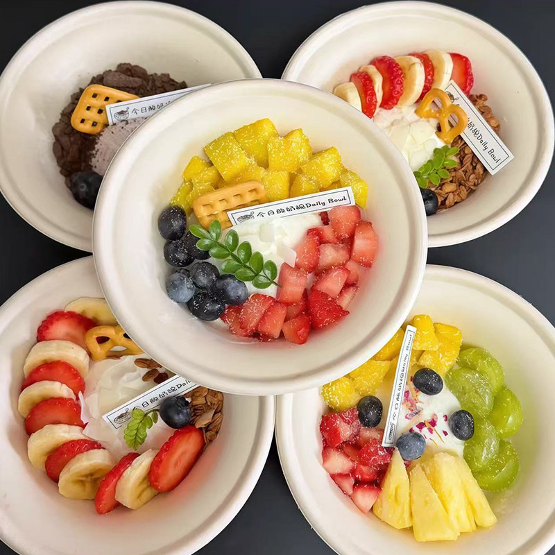 夏季 春游野餐圆形盒子斯巴克甜品拼盘一次性水果酸奶碗打包纸浆碗