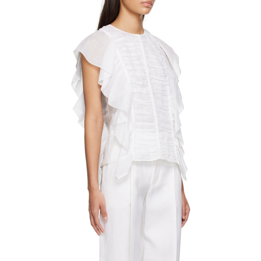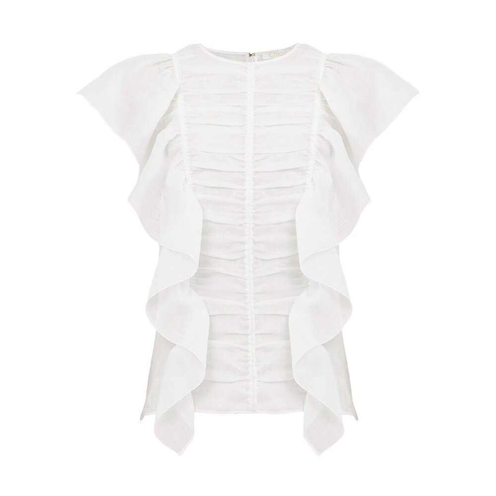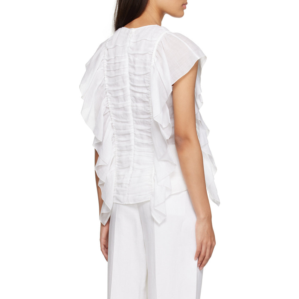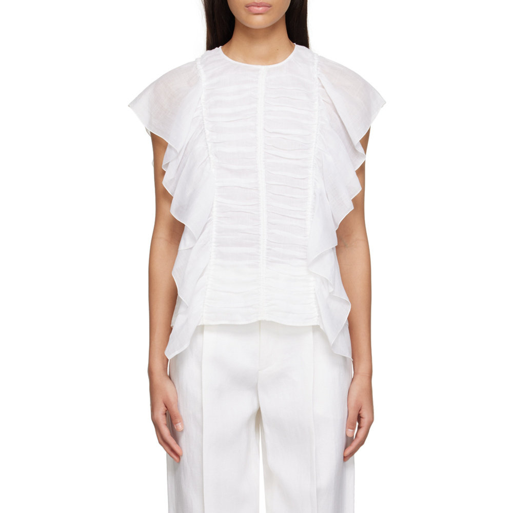 SS2023 C23SHT20016101 白色 无袖 CHLOÉ 荷叶边罩衫 女士衬衫