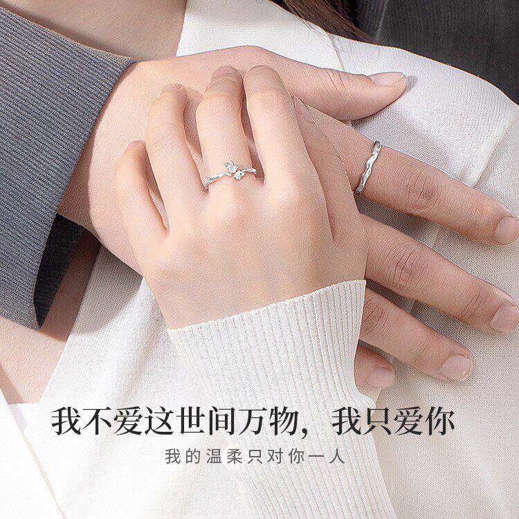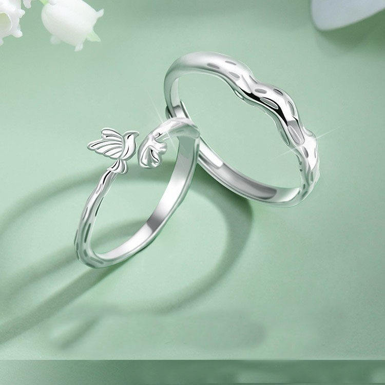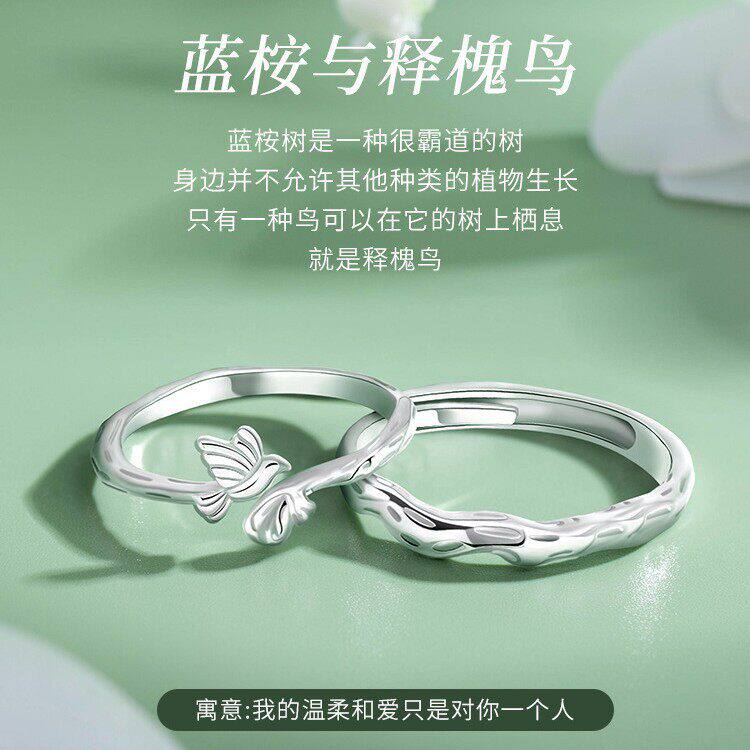 桉树与鸟情侣戒指高颜值对戒ins小众设计指环情人节礼物送男女
