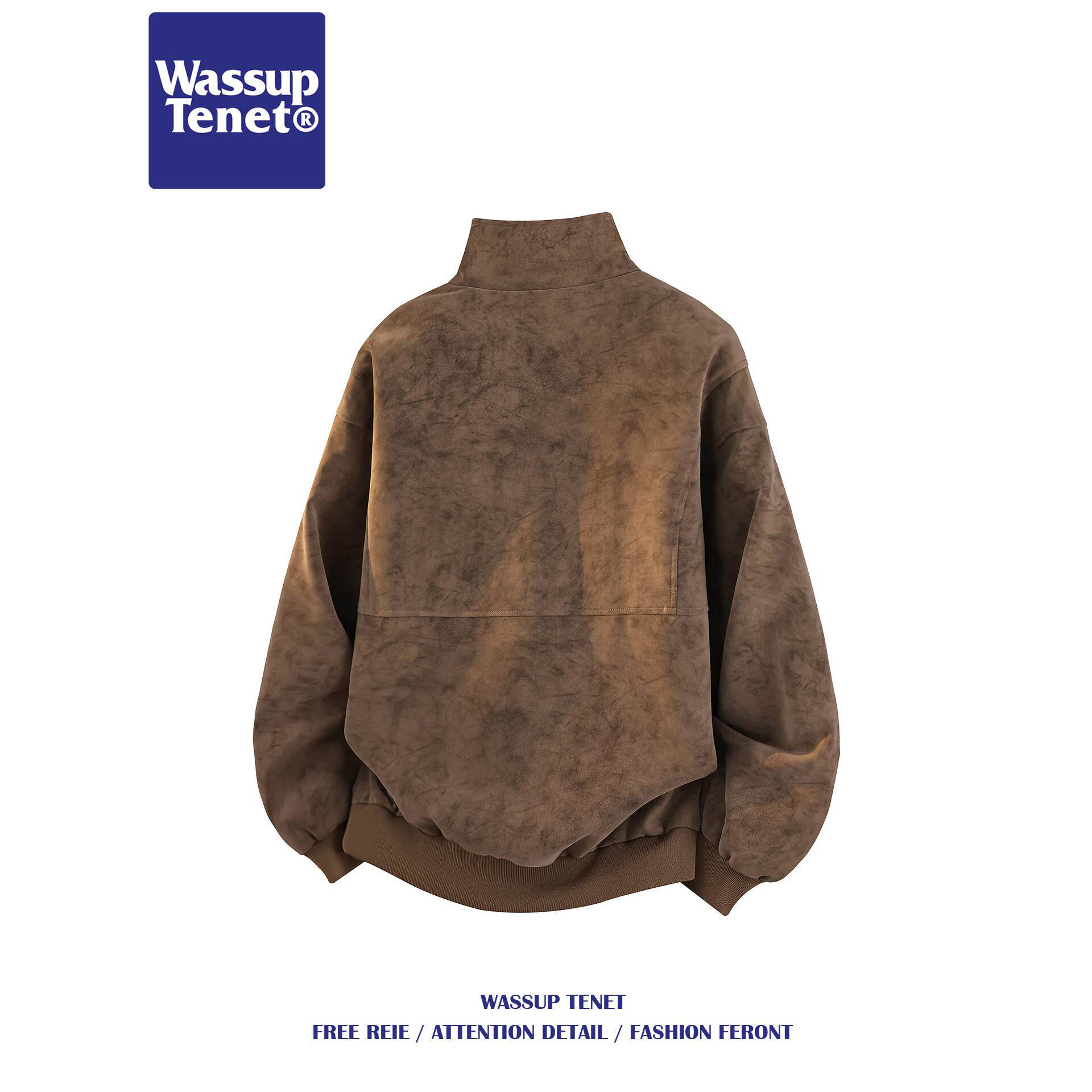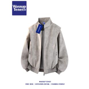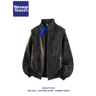 潮牌宽松休闲百搭夹克 解构PU皮衣立领外套男春季 Wassup tenet美式