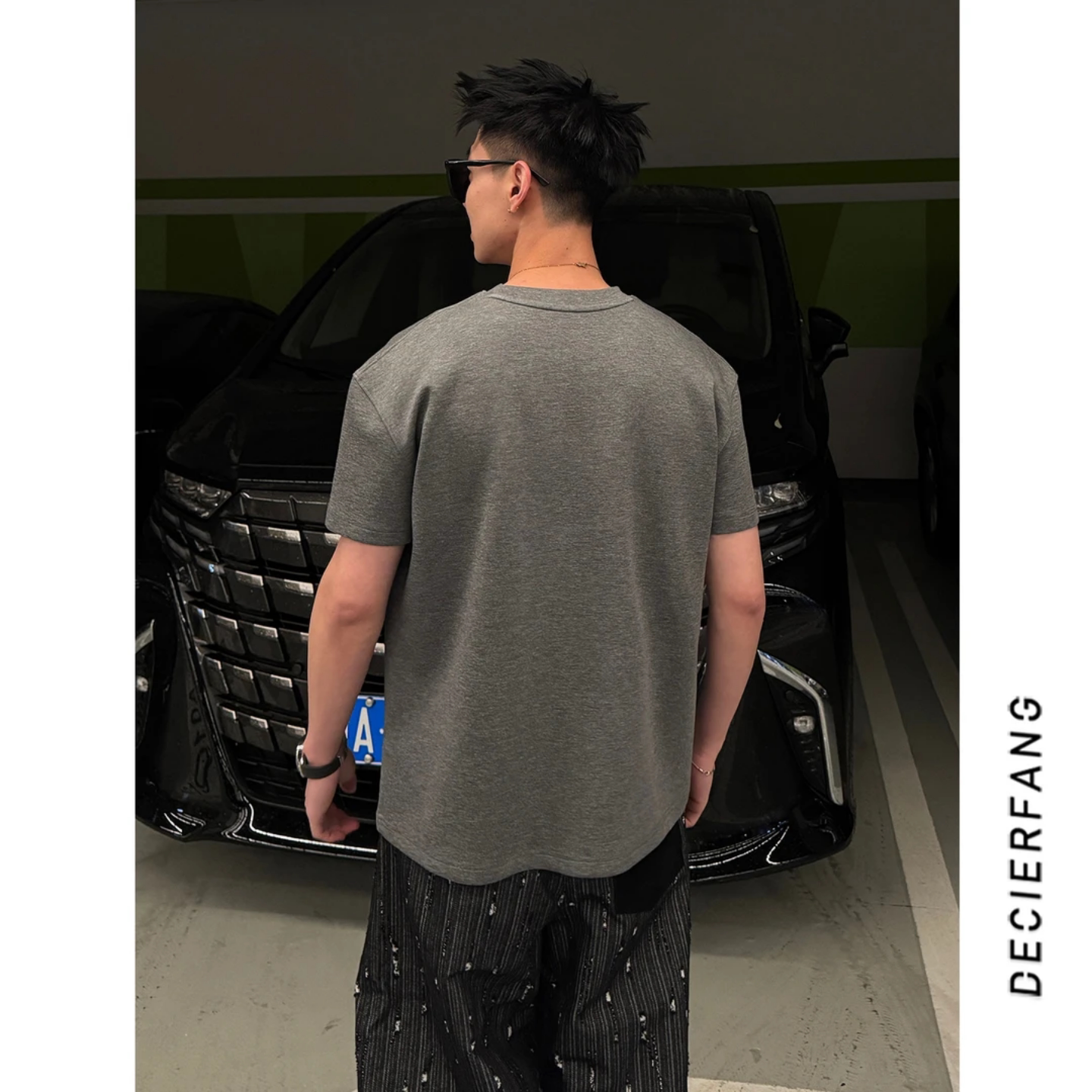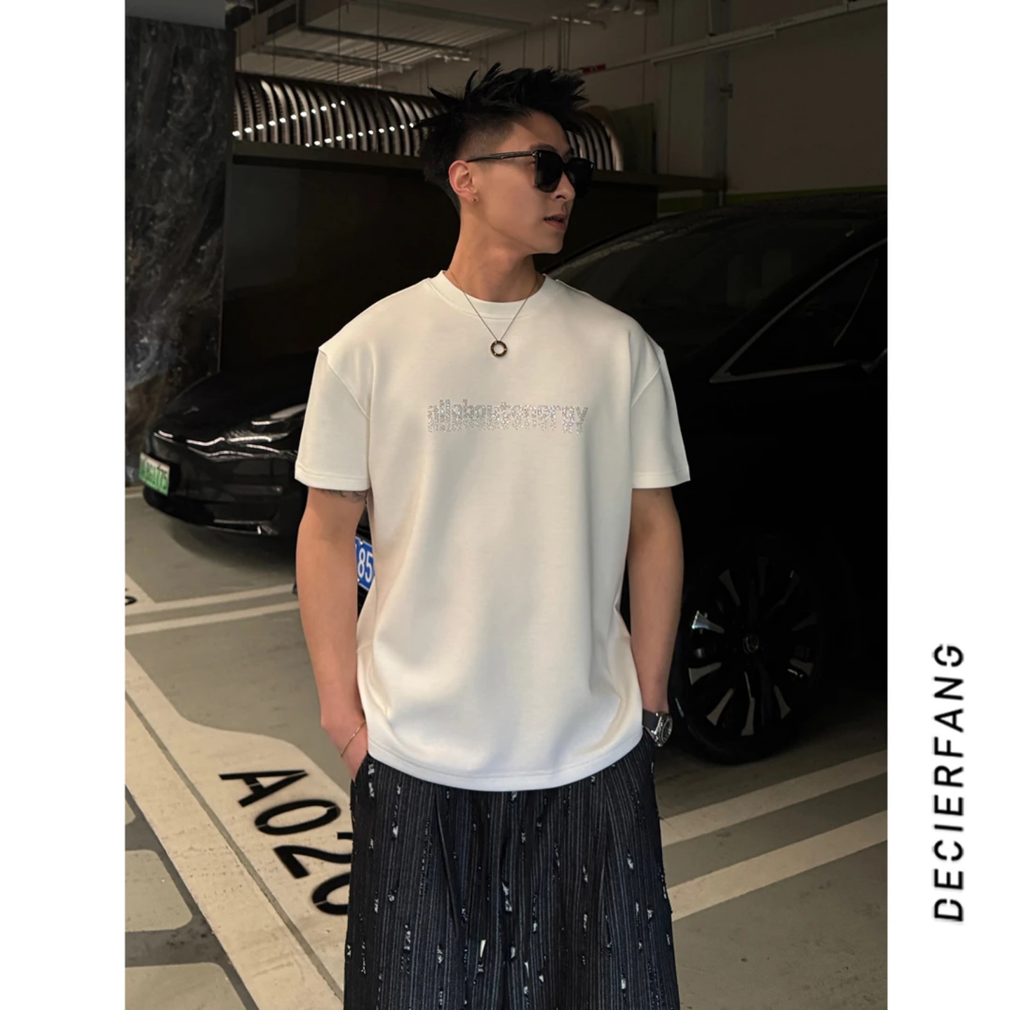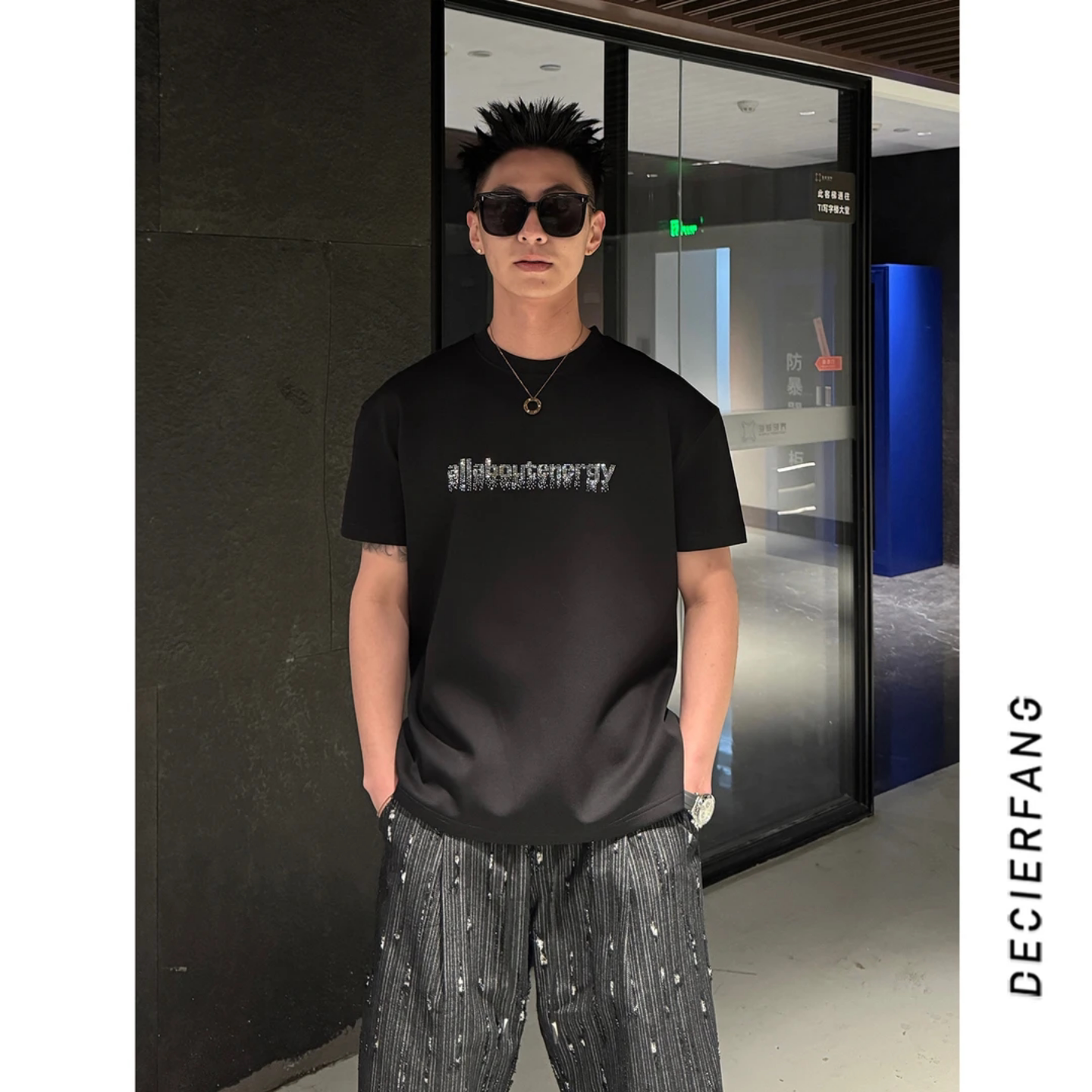 休闲圆领短袖 春季 烫钻字母设计宽松舒适立体男士 潮流个性 T恤 新款