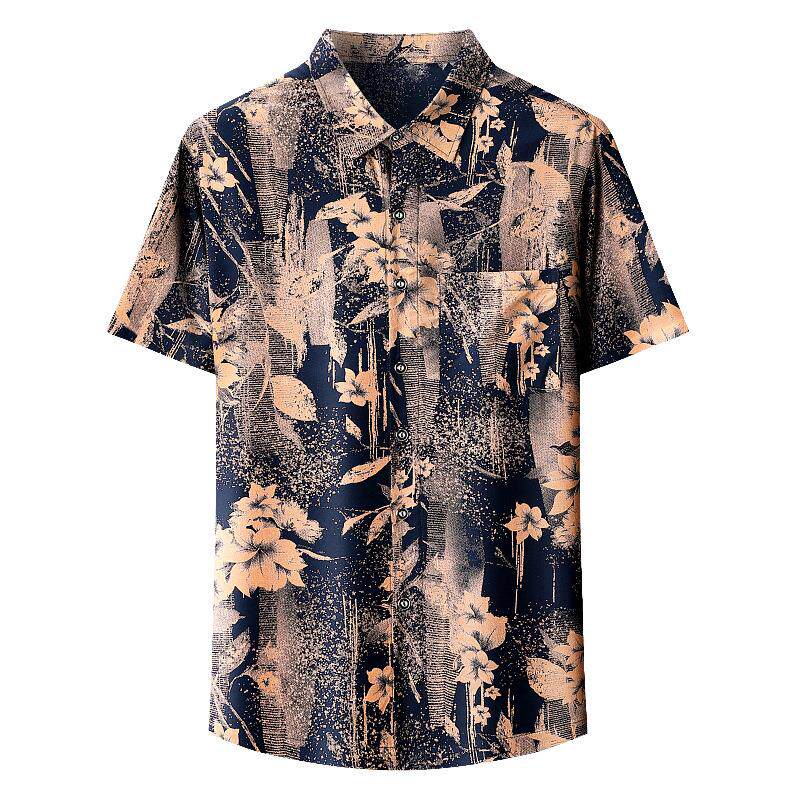 现货跨花境批麻发中码 衬衫 年男夏季 M短袖 多 丝光棉亚印大308 爆款