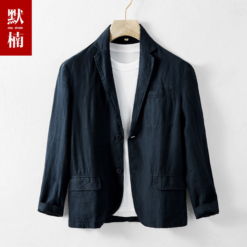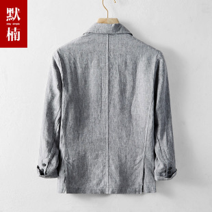 透气外套男潮 男棉麻料商务休闲单西服薄款 春夏季 高端纯亚麻小西装