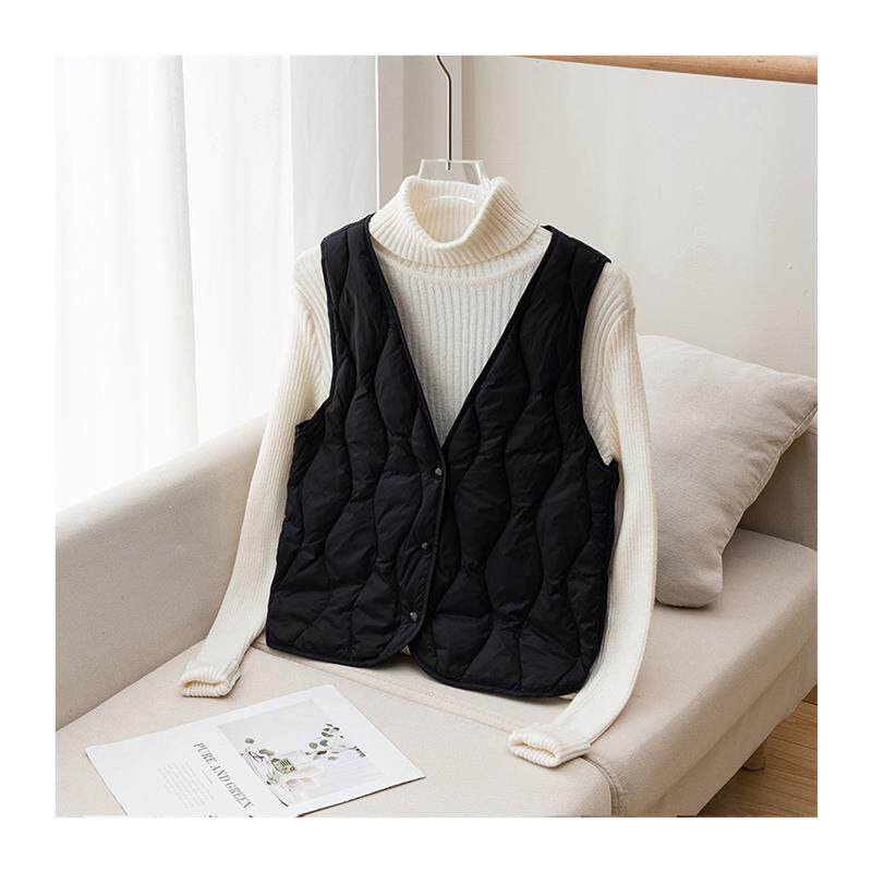 轻薄保暖内穿背心配大衣V领鸭绒内胆 修身 羽绒马甲女短款 秋冬新款